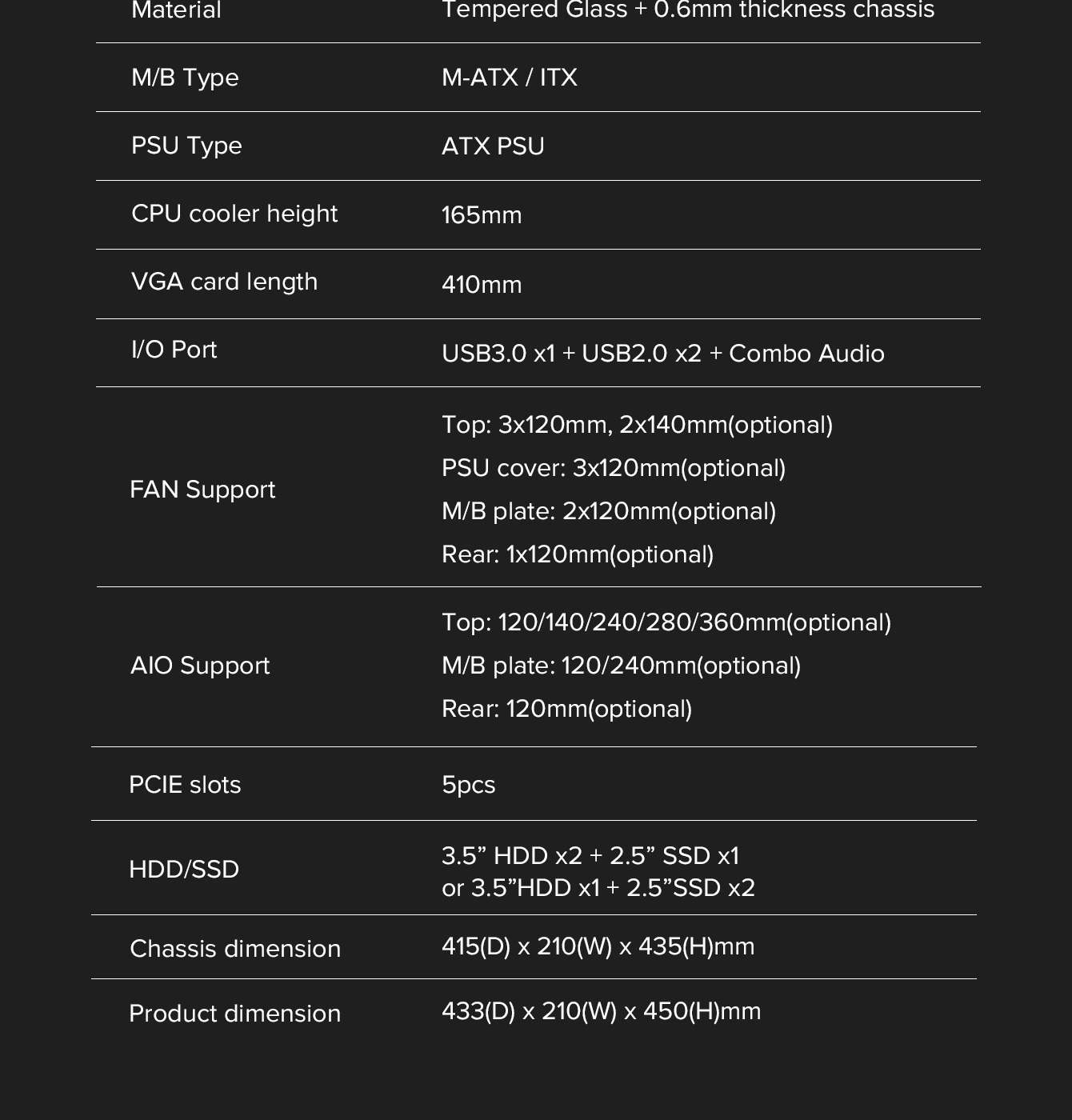 DimensionsChassis(L)415*(W)210*(H)435mm