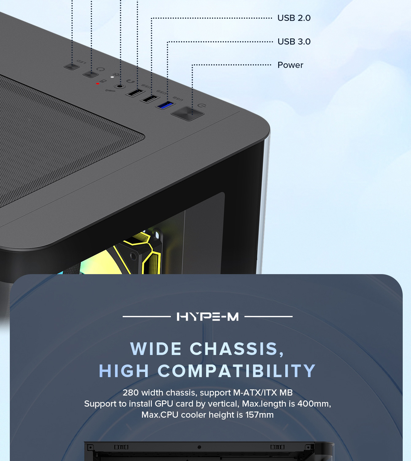 HYPE-M Premium Micro ATX PC case by GameMax- has a unique airflow path allowing for a wide range of compatibility and plenty of cooling options