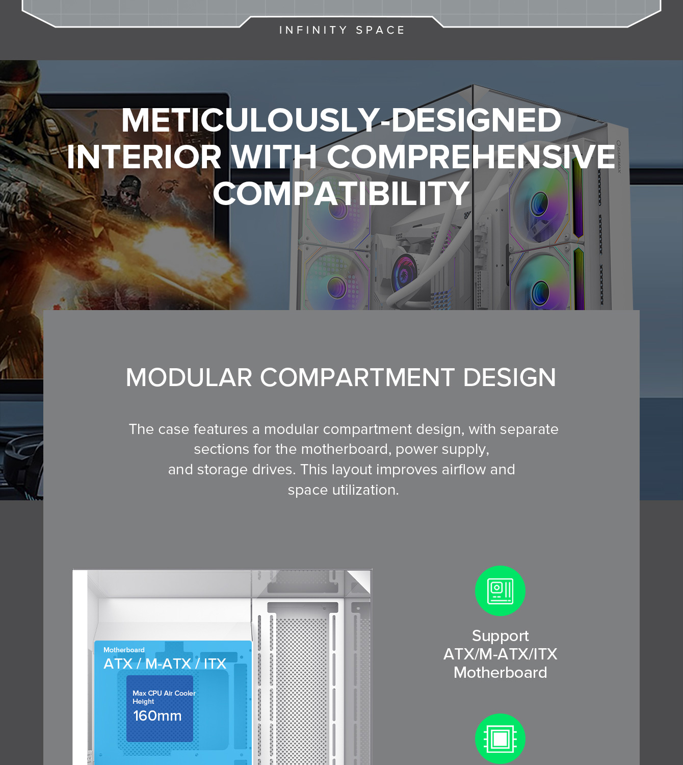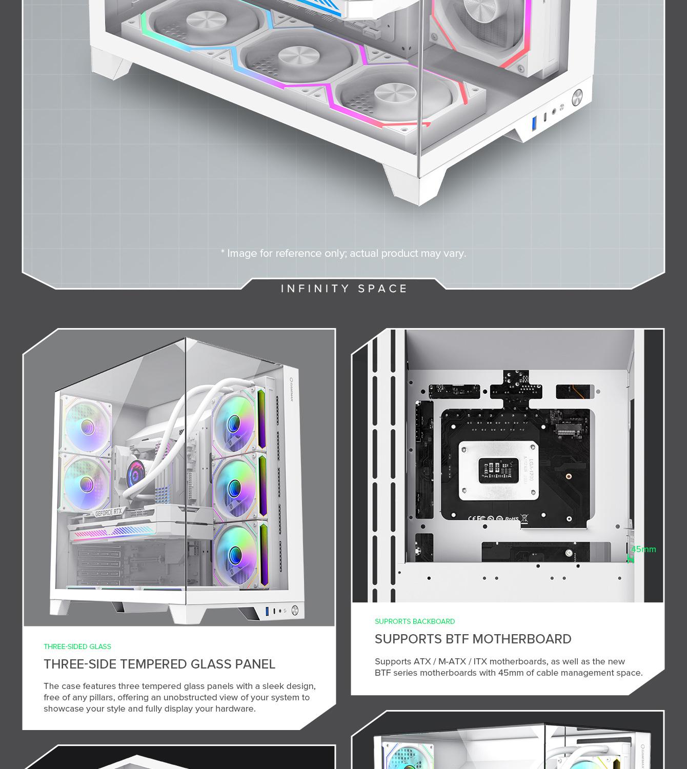 • Compatibility & Form Factor:Supports ATX, M-ATX, and ITX motherboards for flexible build options.
