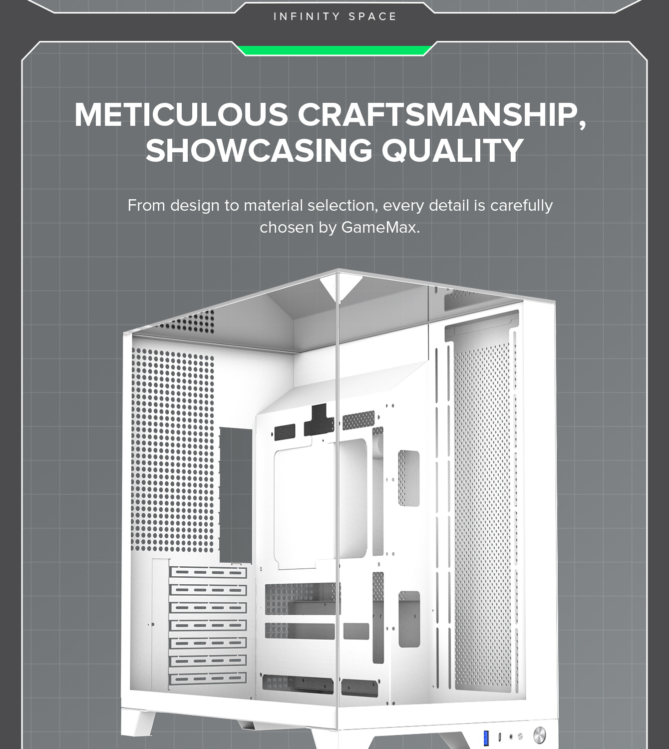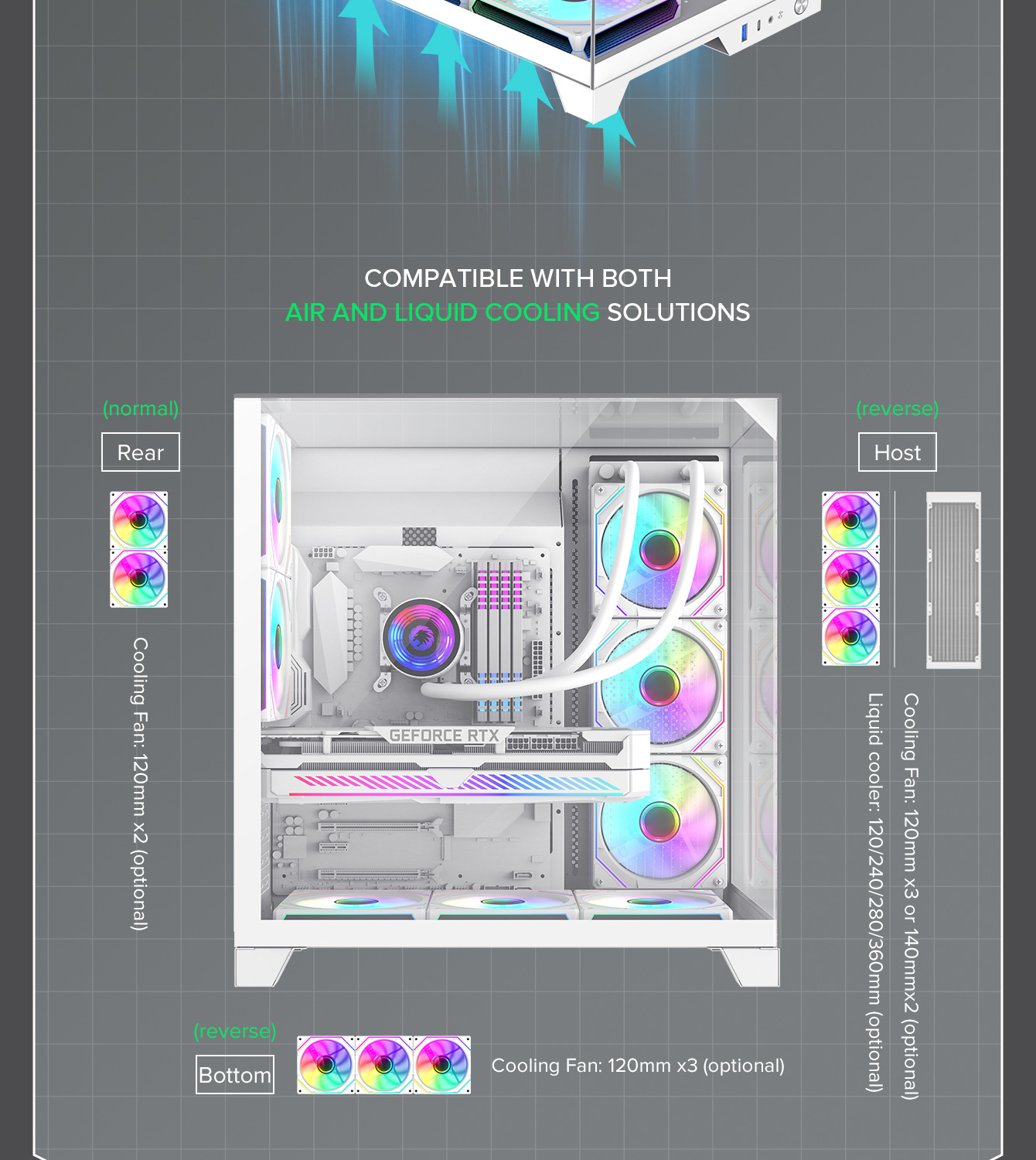 • Advanced Cooling:Supports up to 8 fans and water cooling radiators for optimal thermal performance.