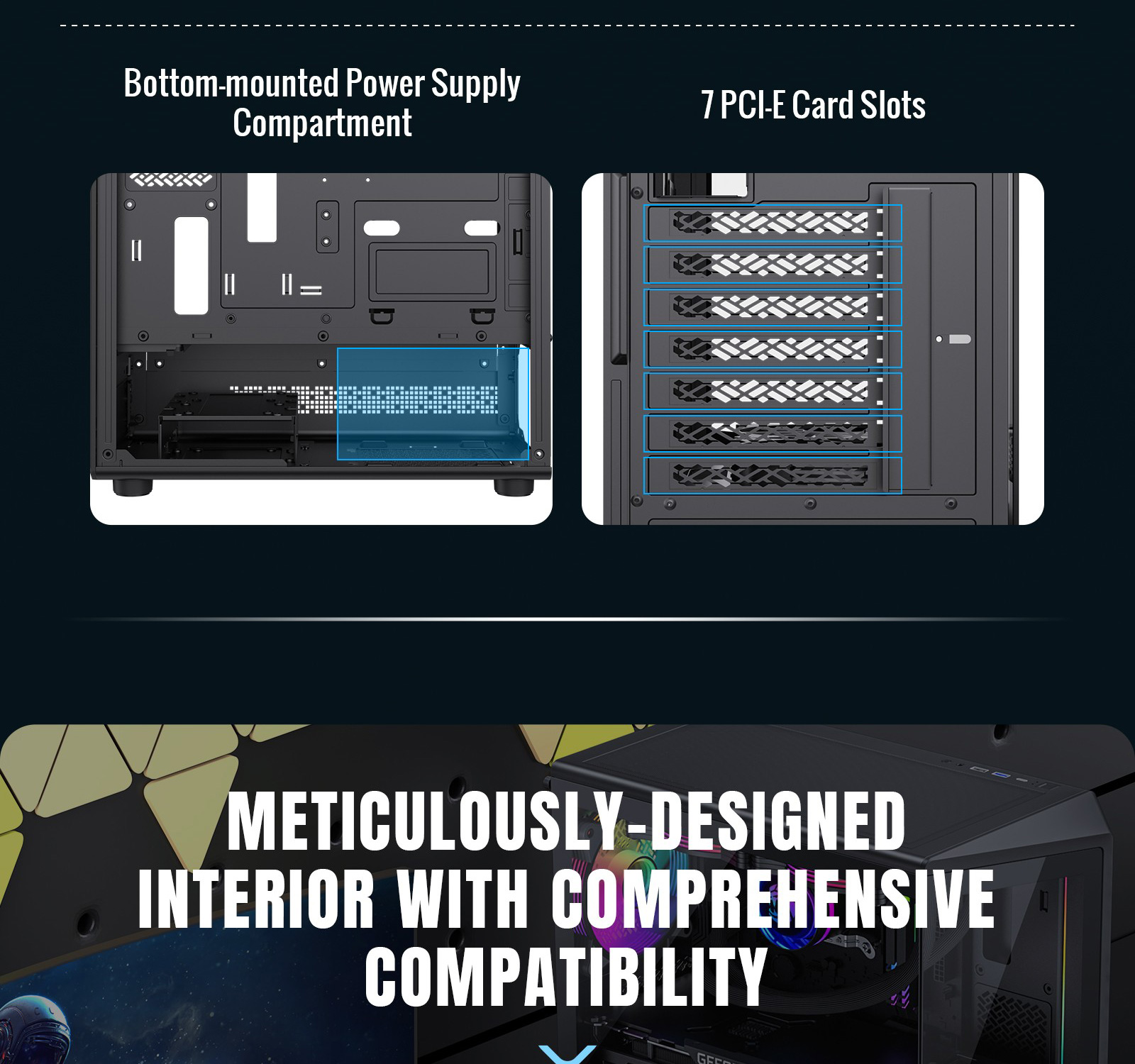 • 5 ARGB Fans: Infinite loop lighting for a captivating visual effect.
