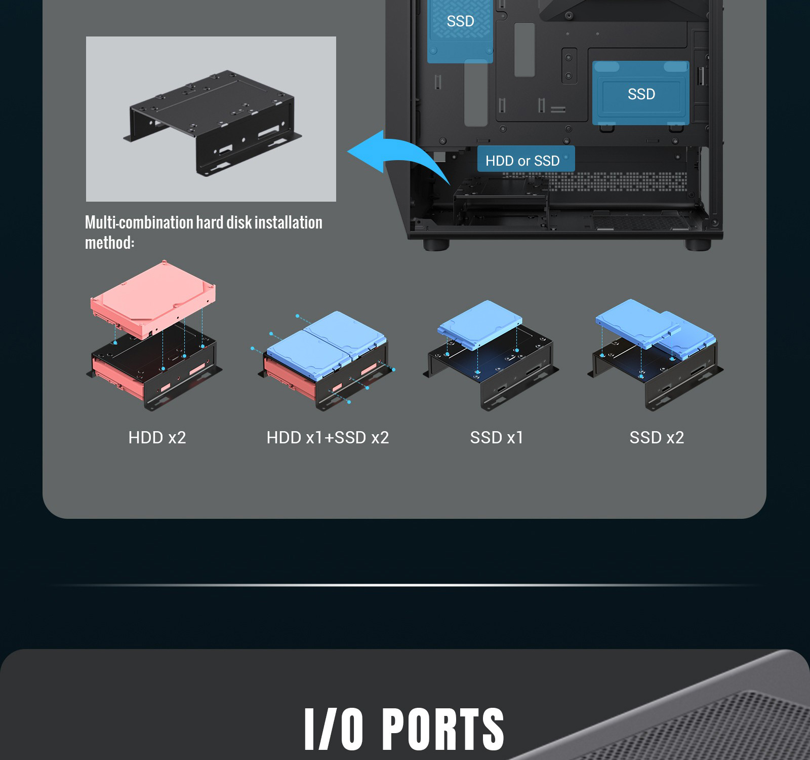 | Internal Drive Bay(s) | 3.5" (HDD) | 1*3.5HDD+5*2.5SSD or 2*3.5HDD+3*2.5SSD or 3*3.5HDD+2*2.5SSD or 2*3.5HDD+2*2.5SSD |