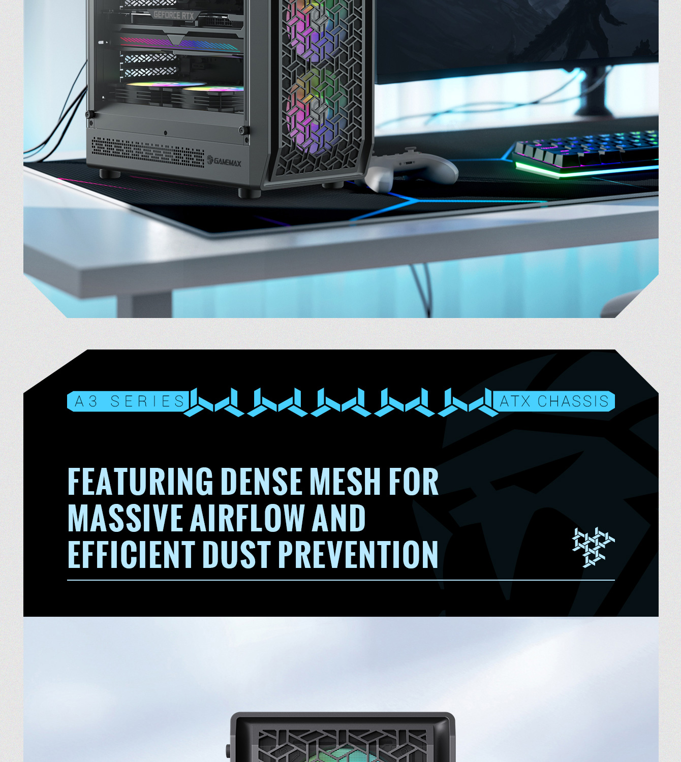 • Dense Mesh Dust Filter: Prevents dust while allowing ample airflow.