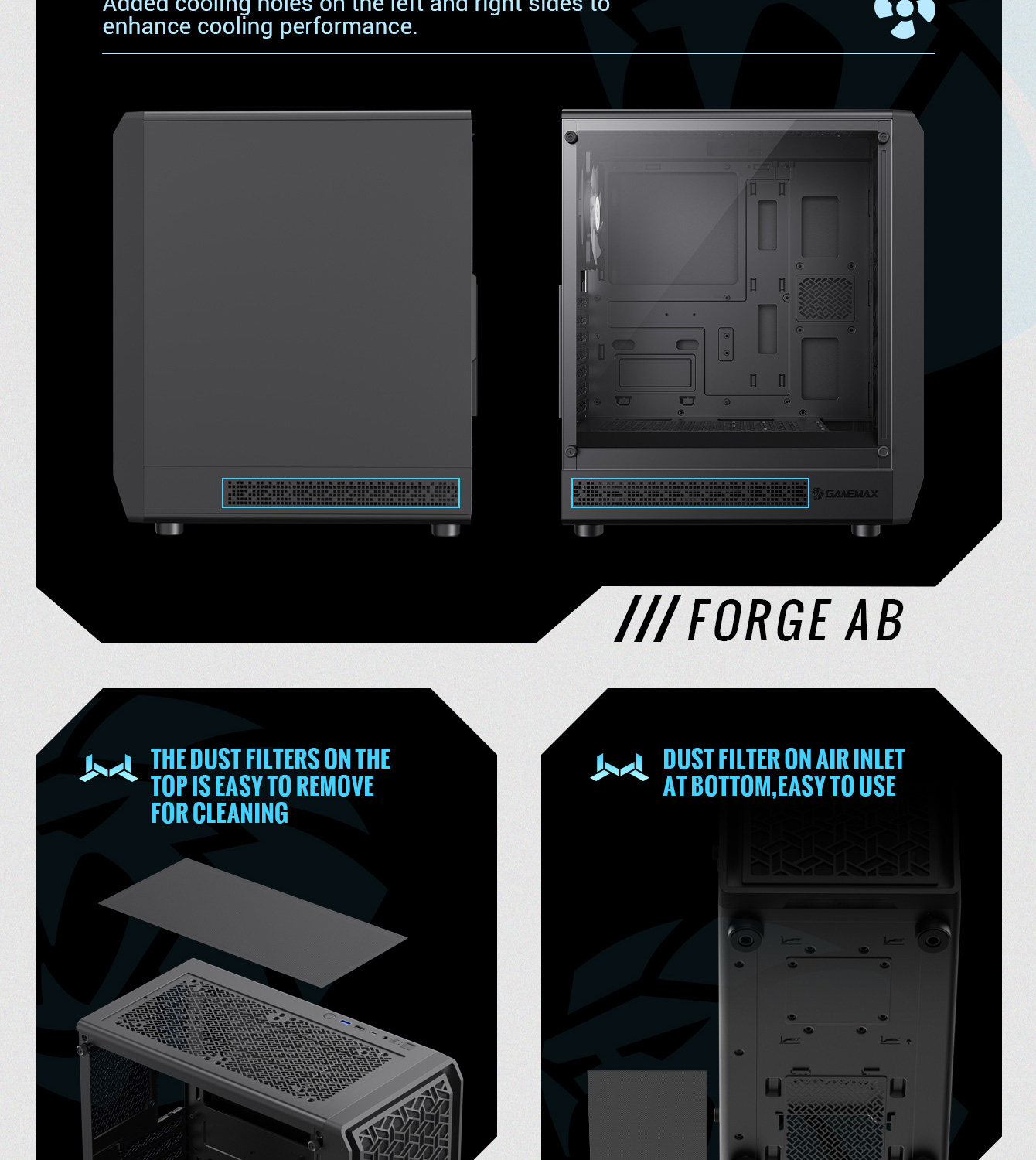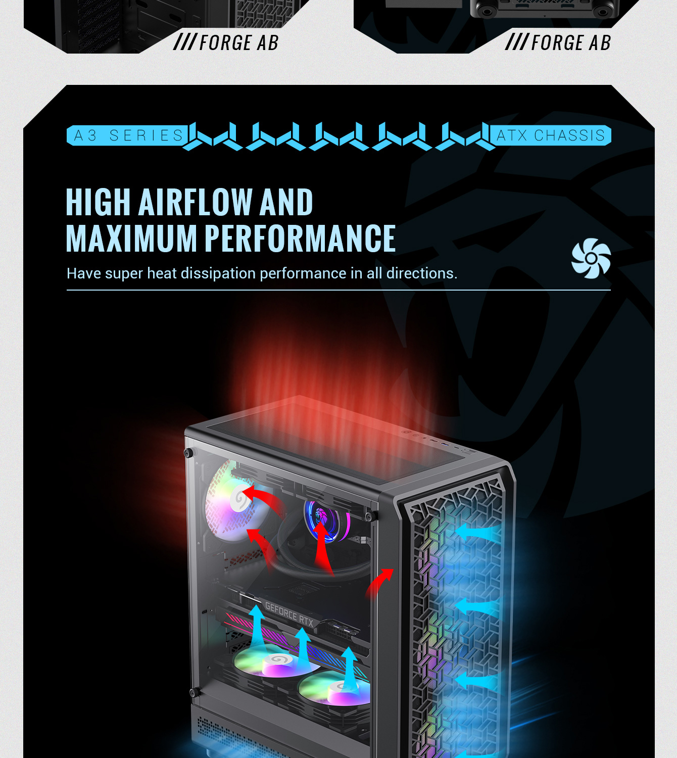 • Unique Airflow & Cooling: Forge AB Premium features a unique airflow design with 6 ARGB fans and 360mm radiator support for optimal cooling.
