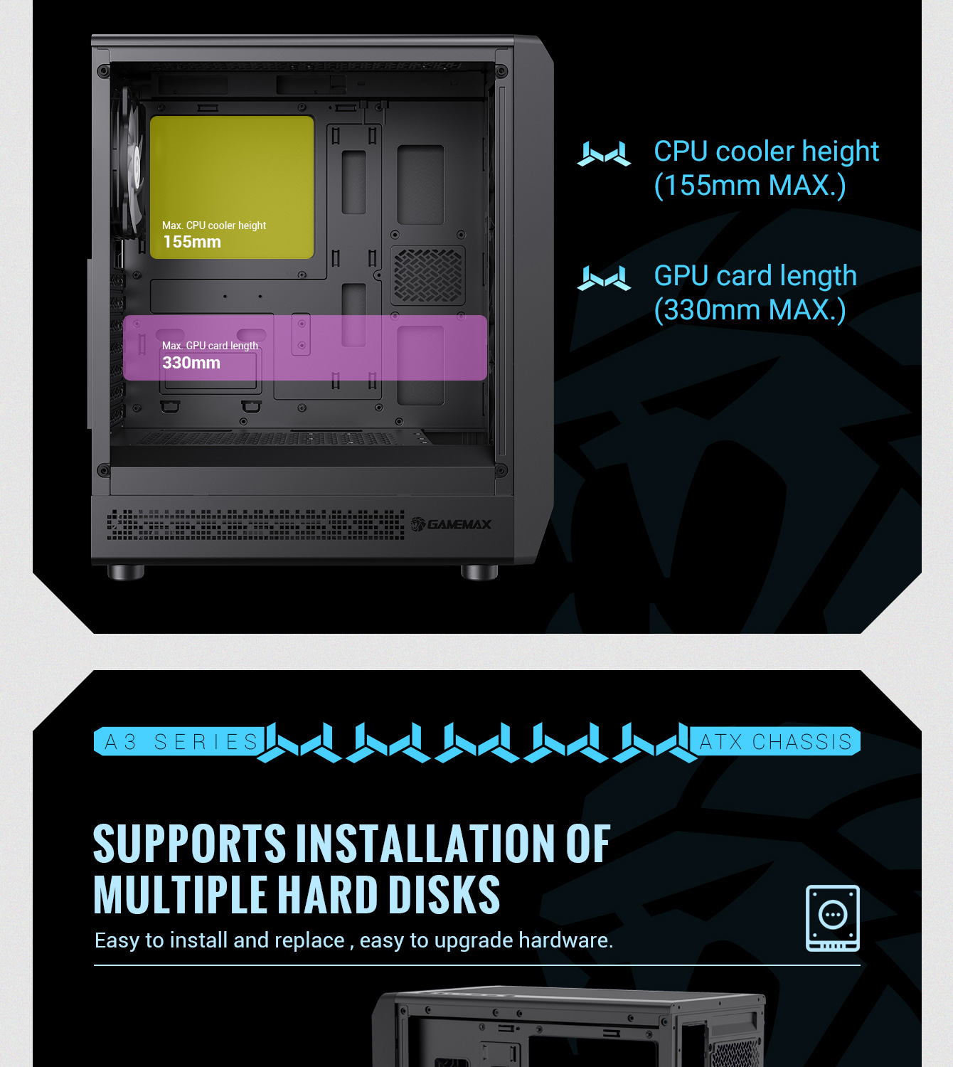 | Water Cooling Support | Front | 120mm,140mm,240mm,280mm.360mm |