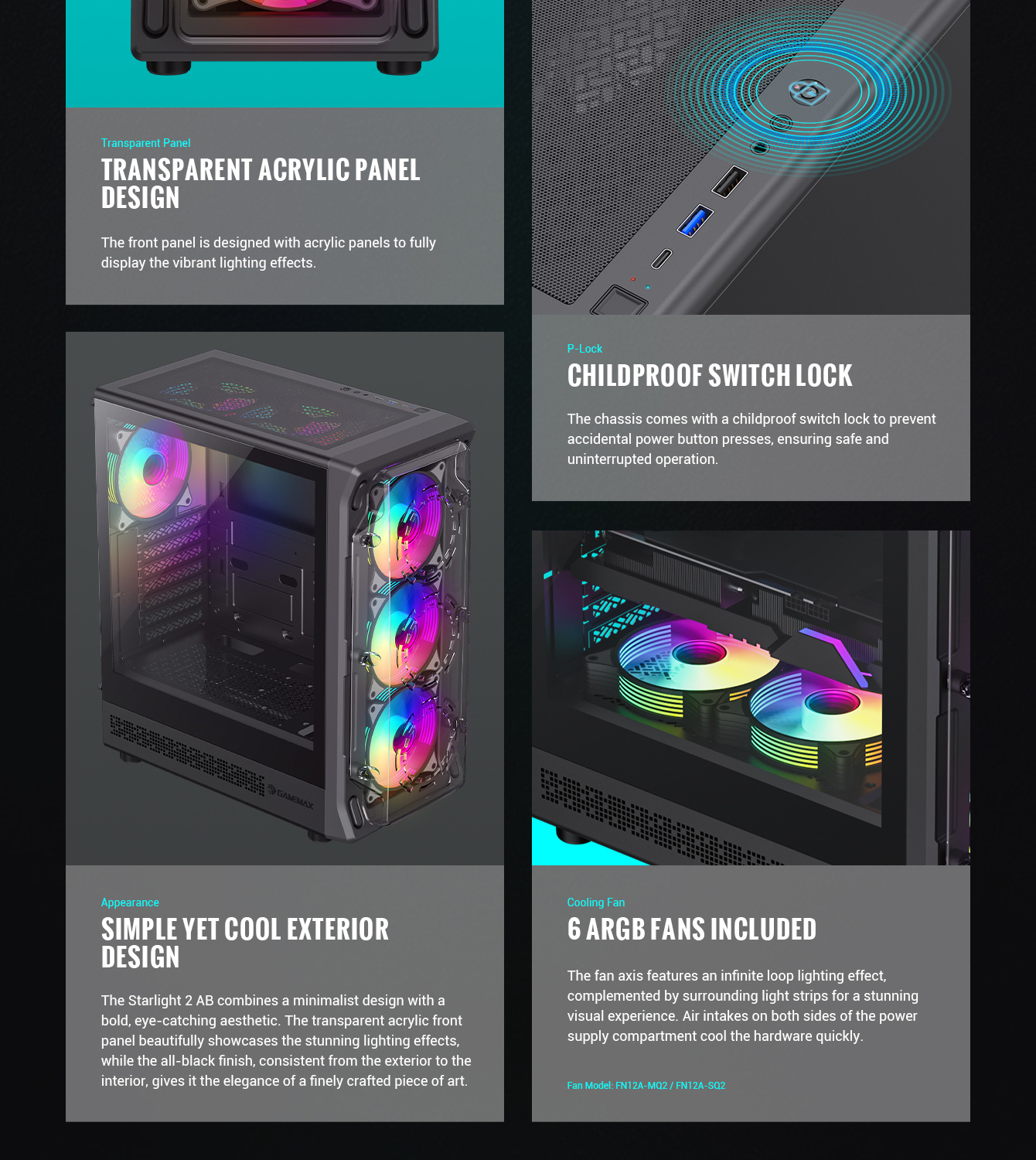 Starlight 2 AB Mid Tower Black PC Case with Tempered Glass Side Panel, Excellent Cooling, and Versatile Storage Support