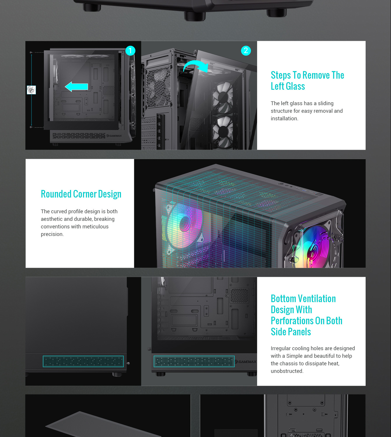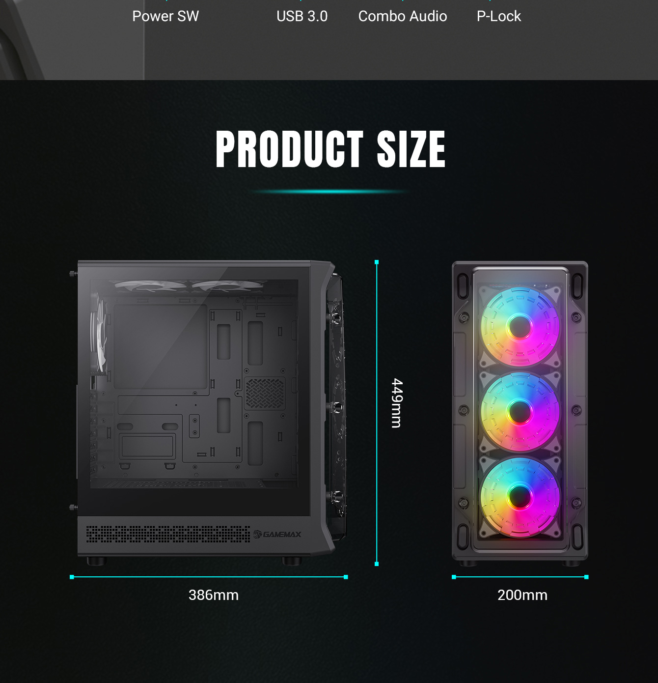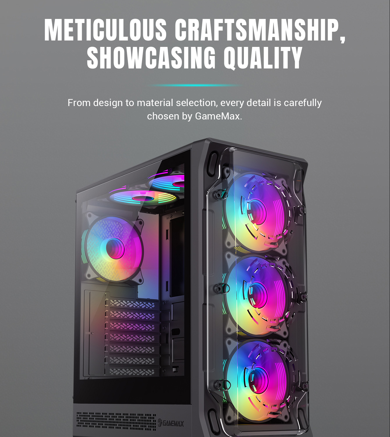 • Tempered Glass Side Panel: Showcases internal components and RGB lighting with a sleek glass design.