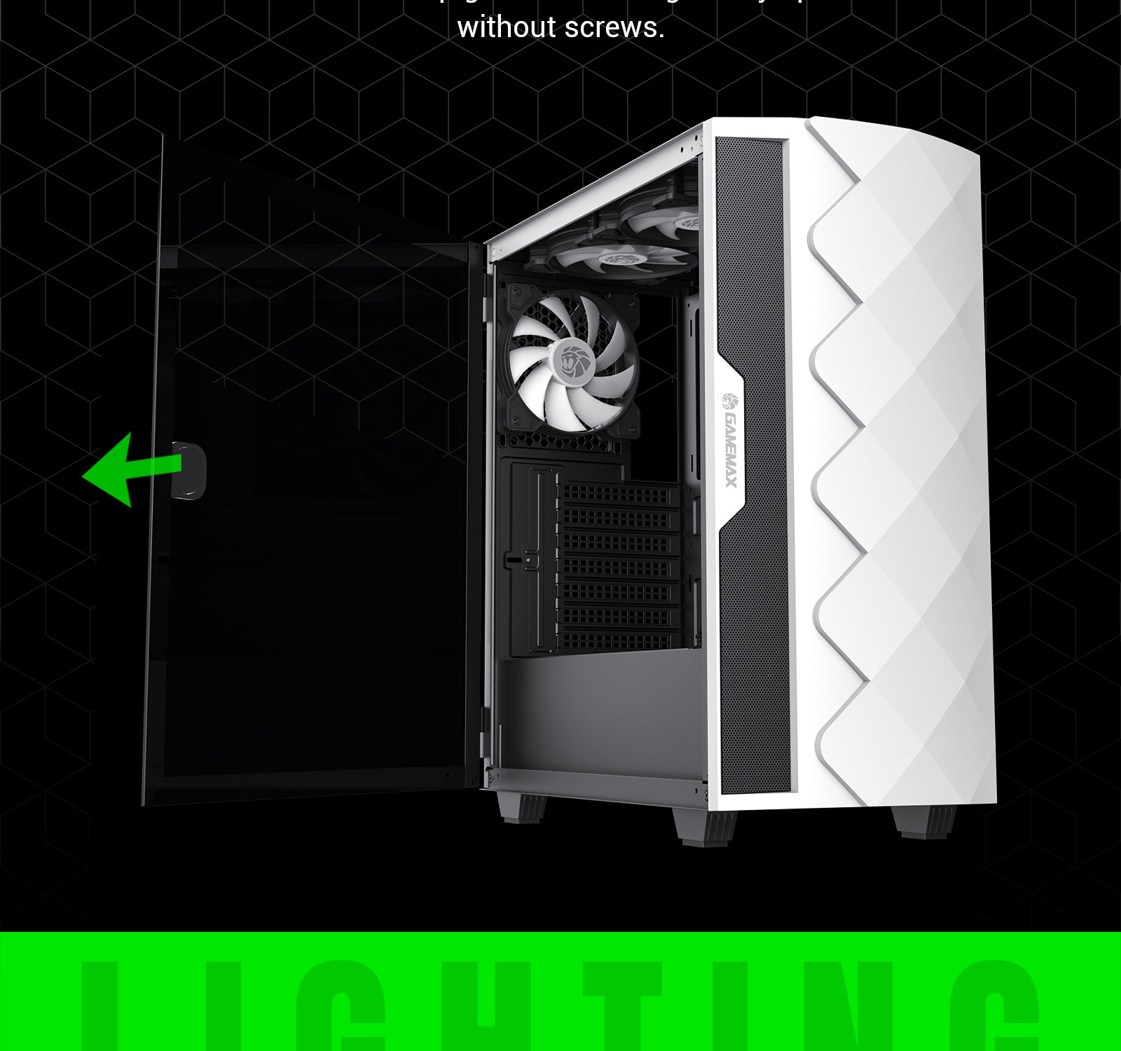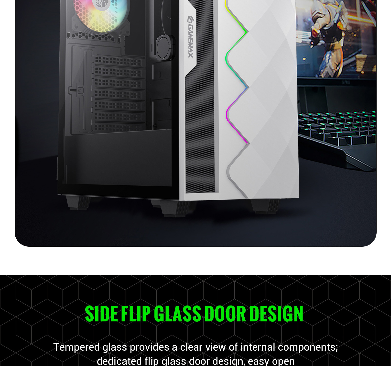 GameMax Diamond CP White Mid-Tower PC gaming case, designed for easy builds and a premium aesthetic, delivering high-end features at a great value.