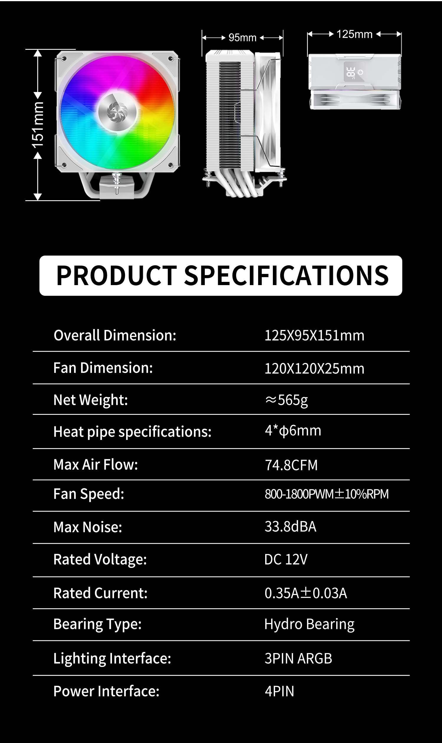 • ARGB synchronized light effect, PWM intelligent temperature control fan