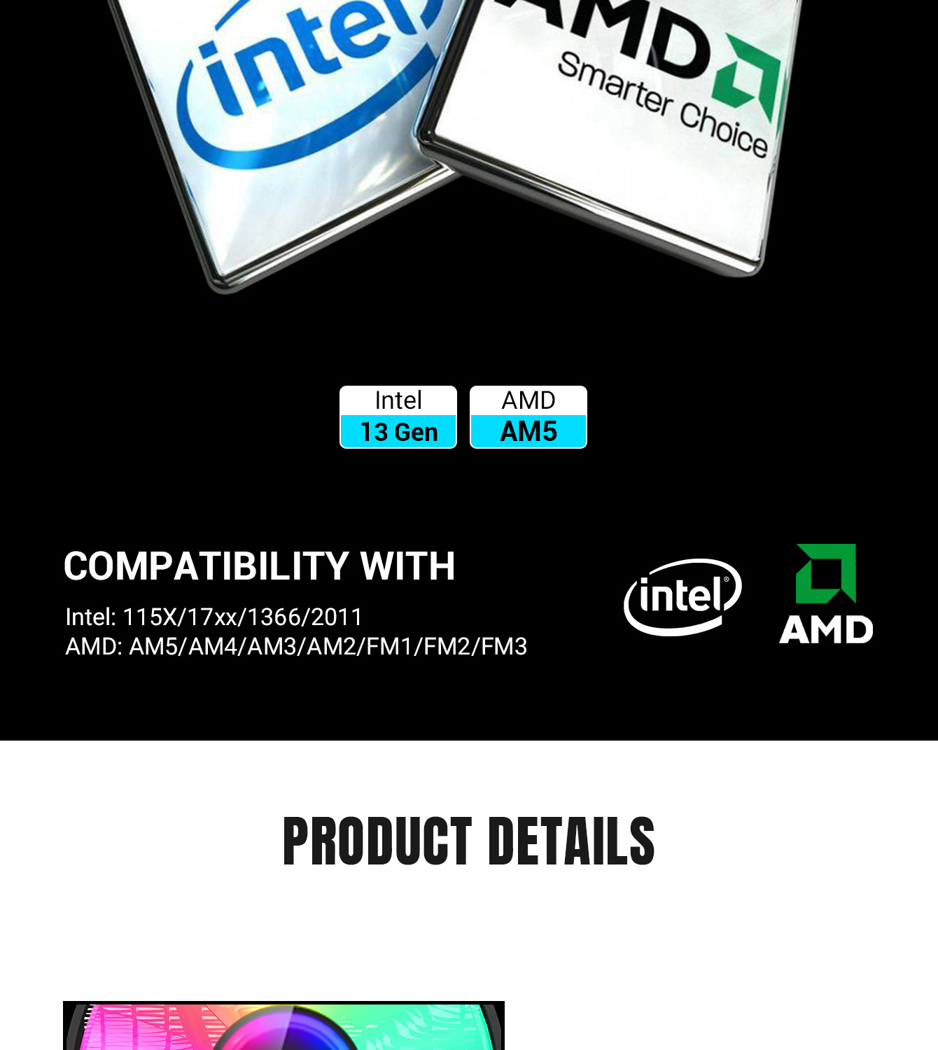ARGB Lighting Sync, 270° Rotatable Water Block