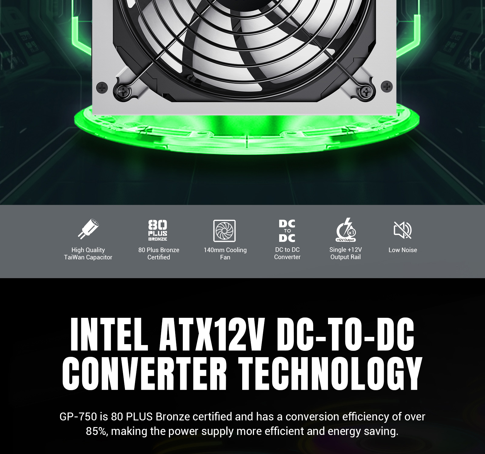 GameMax 80 plus Bronze Certified GP-750 None-Modular PSU features a cut-edge DC-to-DC design, Provides high-performance business and gaming build, and experiences gaming Bliss with the GP-750 power supply!