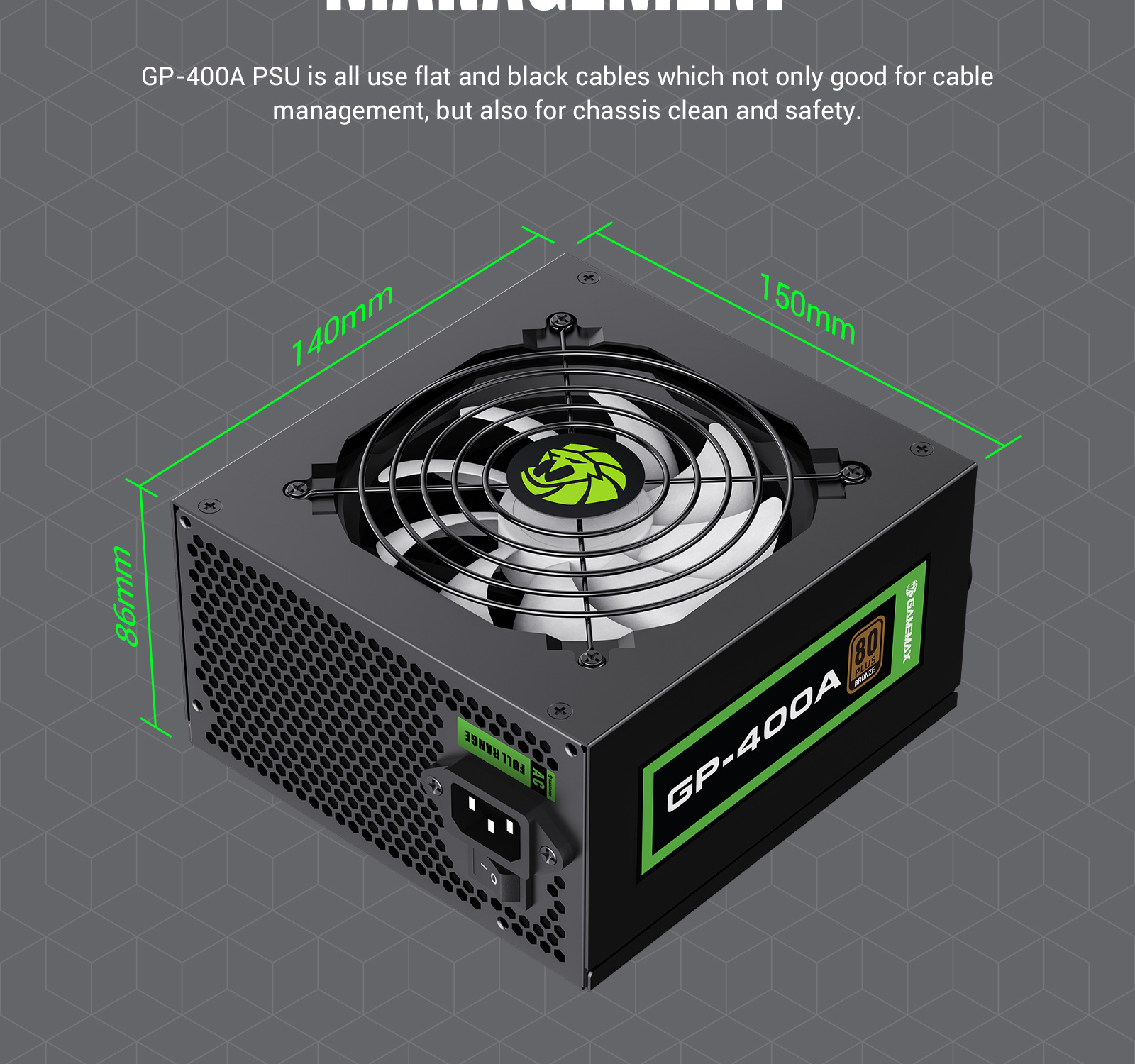 GameMax performance range GP-400A power supplies are a great choice if you are building a home or office system as a mainstream model