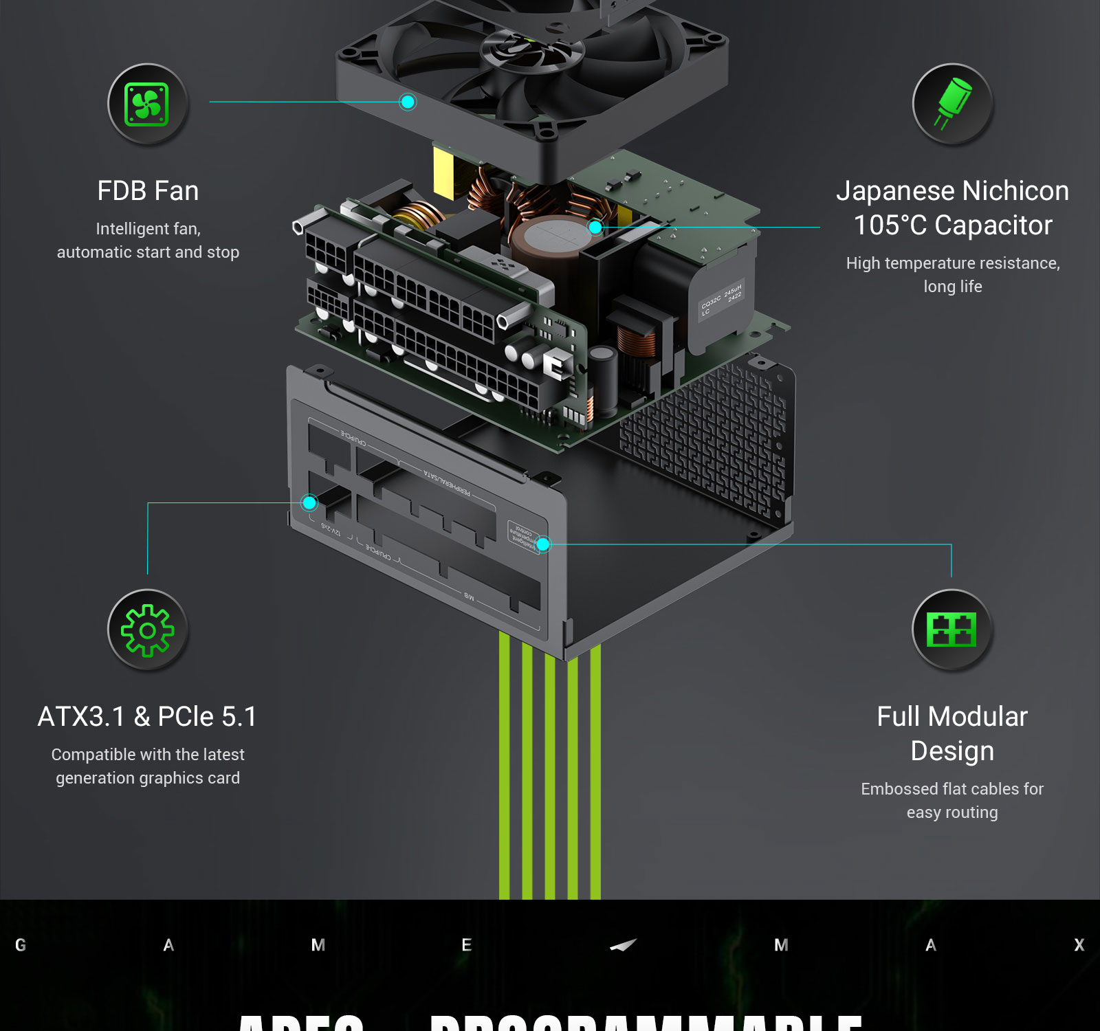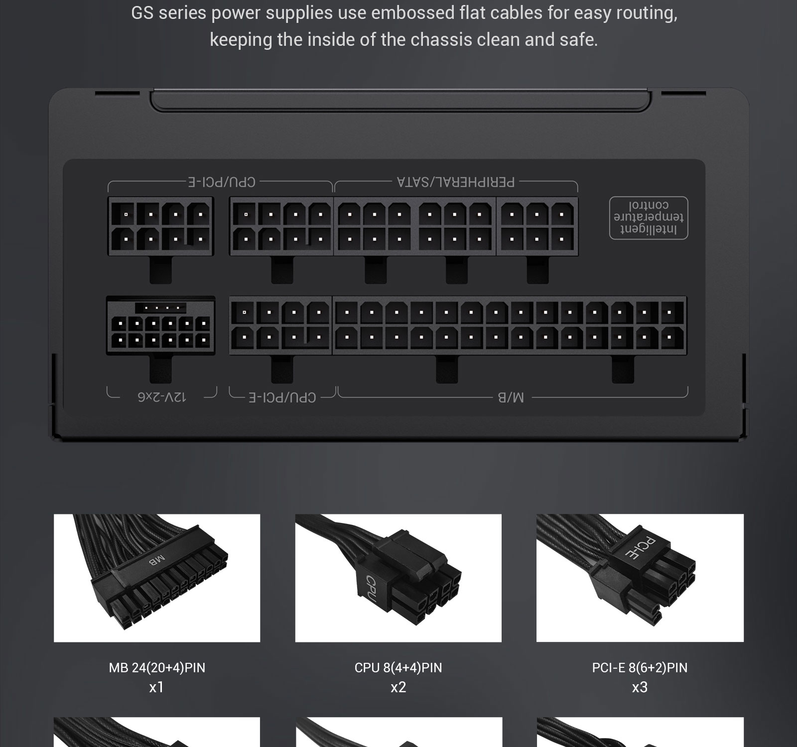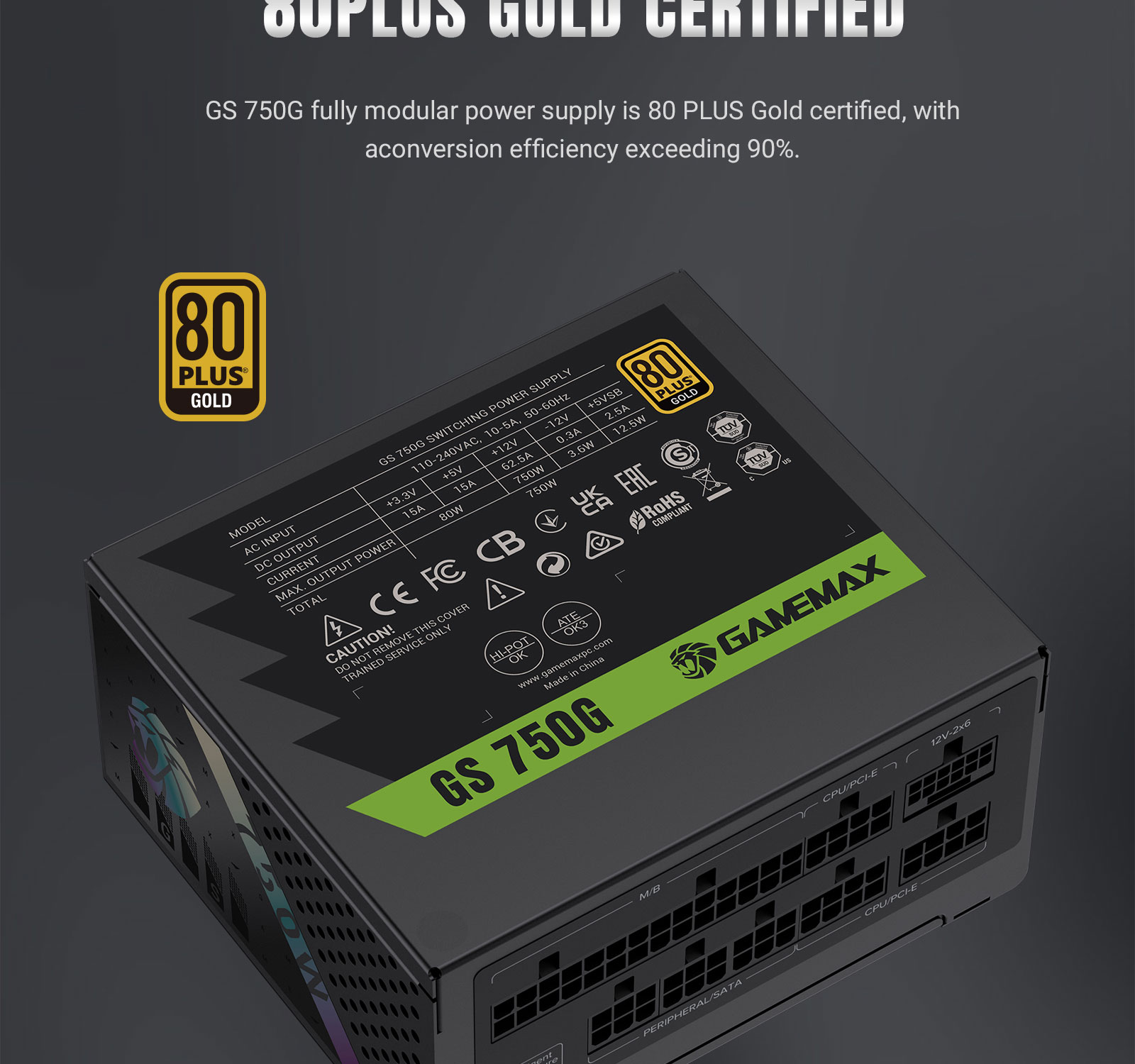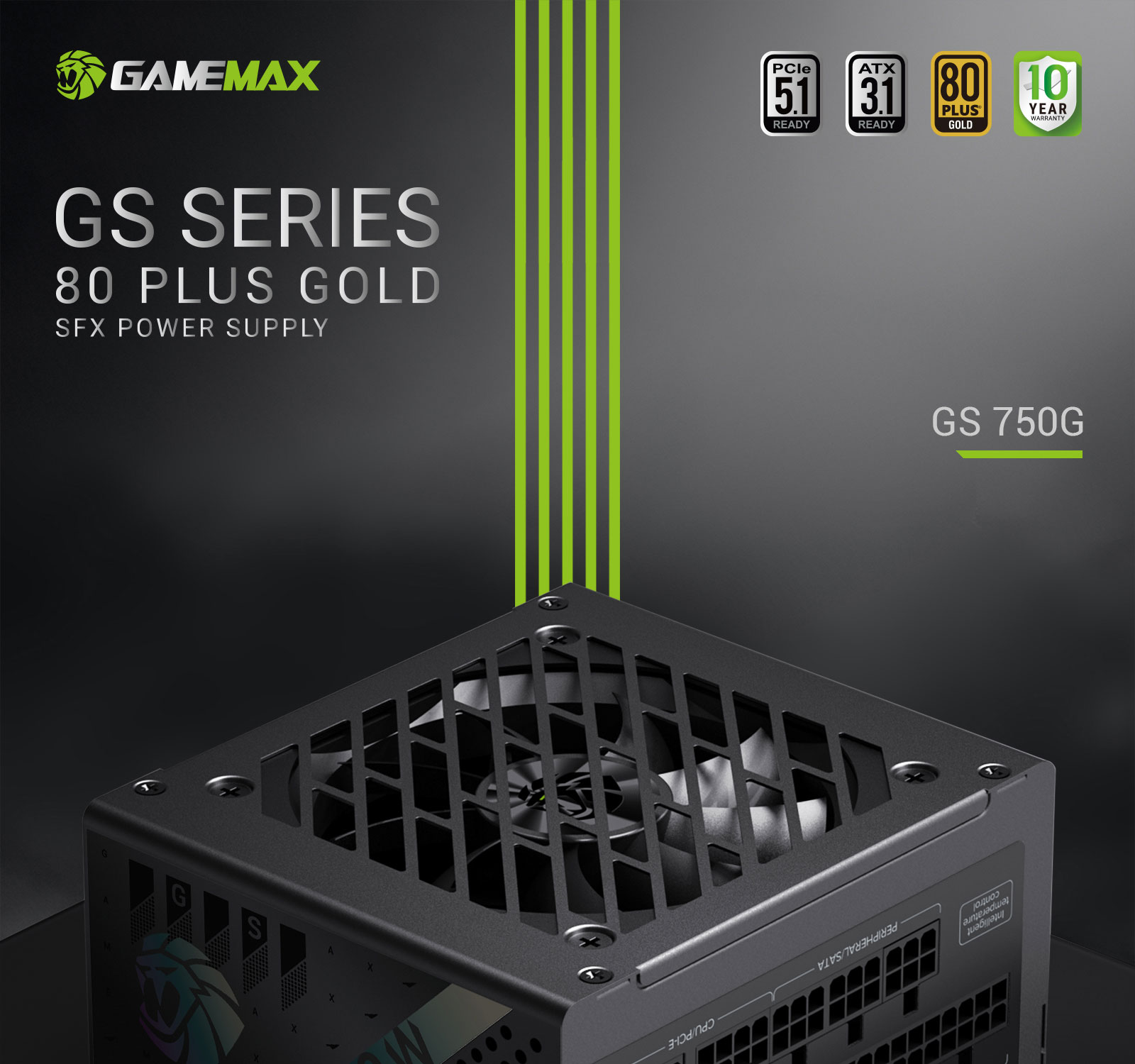 GS 750G 80 Plus Gold Certified SFX Power Supply with Intelligent Cooling, Japanese Capacitors, and Comprehensive Protection