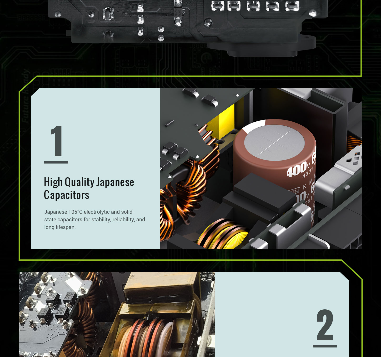 High-Quality Japanese Capacitors: Ensures long-term reliability and stability with 105°C electrolytic and solid-state capacitors.