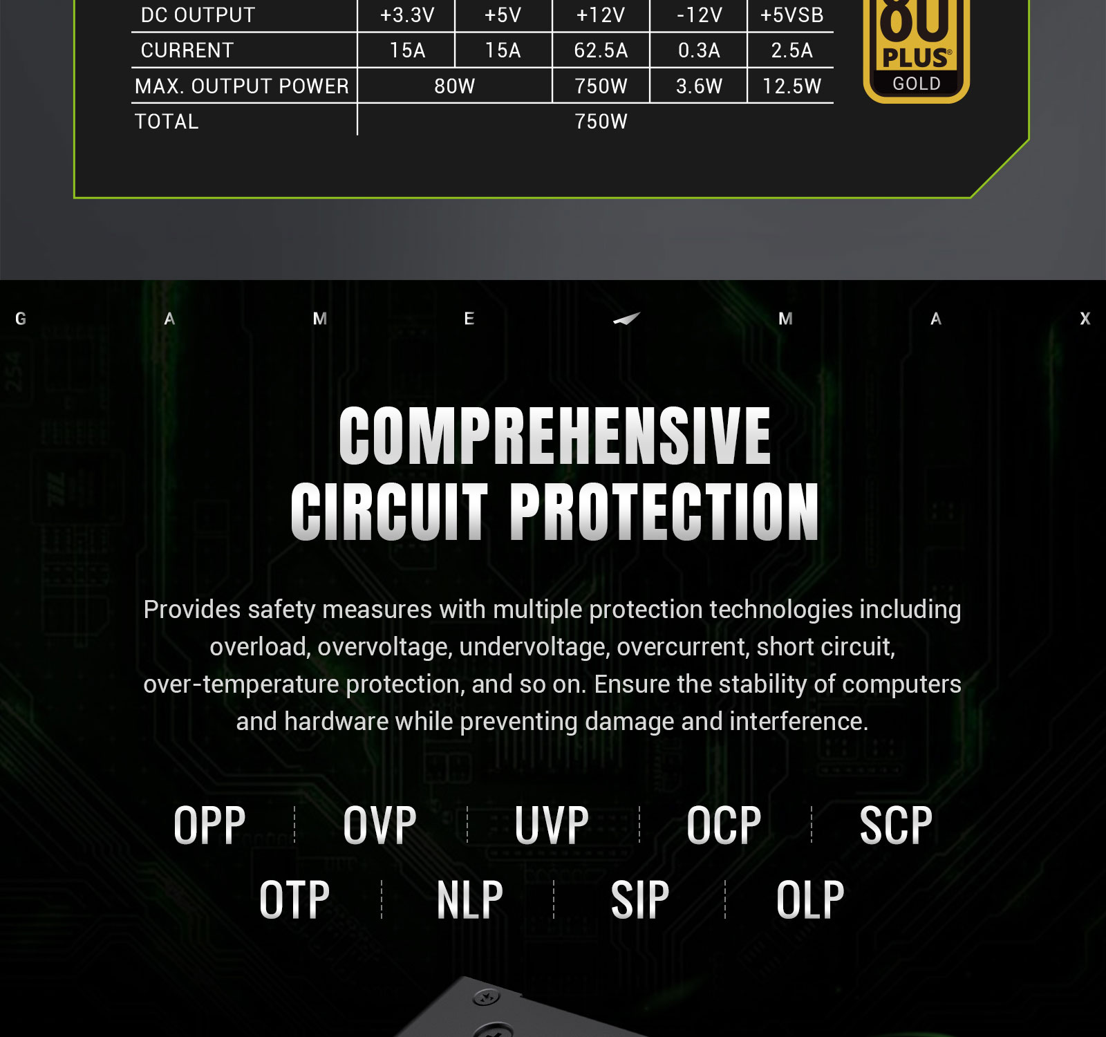 Comprehensive Circuit Protection: Provides multi-layered protection (OPP, OVP, UVP, OCP, SCP, OTP) to safeguard your PC and components from damage.