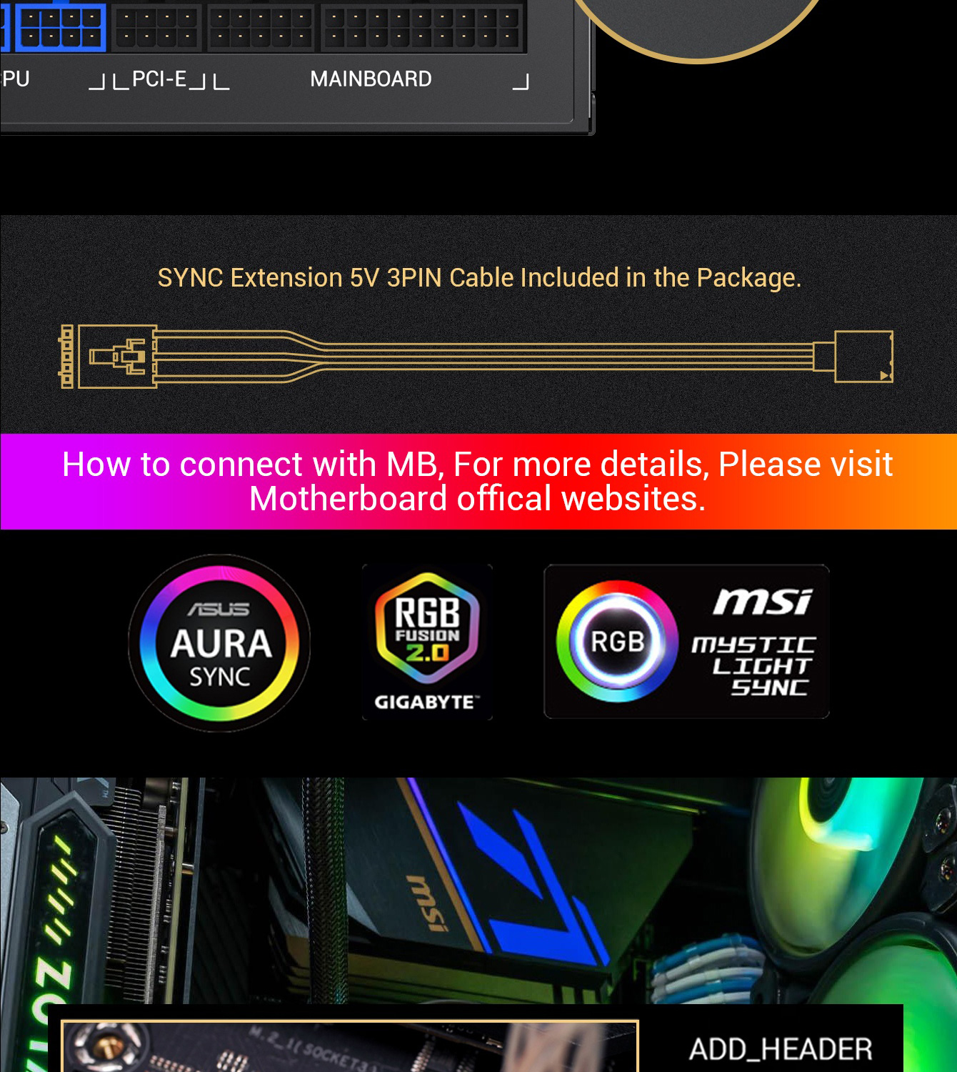 | ARGB SYNC | Access external ARGB HUB or 5V 3pin signal from motherboard |