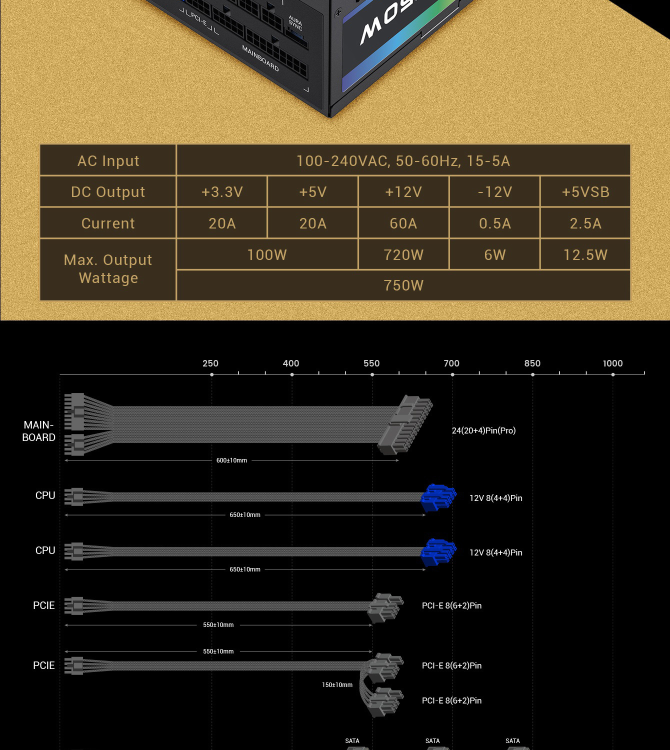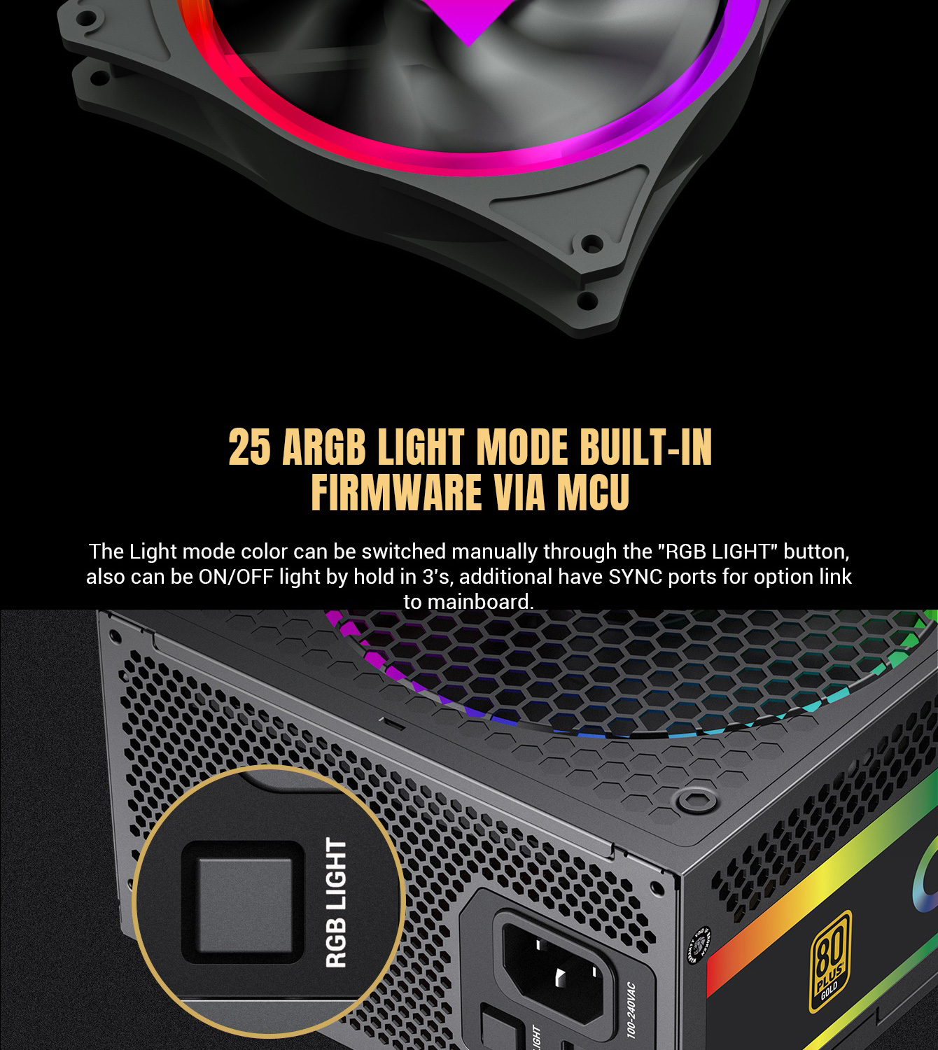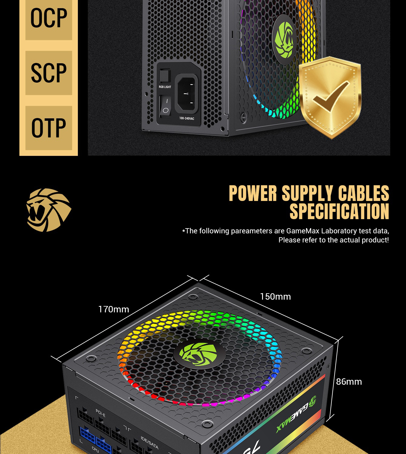 GameMax RGB-750 PRO Fully Modular 80+ Gold Certified,12V SYNC Rectification design for Powerful single +12V rail helps ensure a stable and reliable supply to other PC components