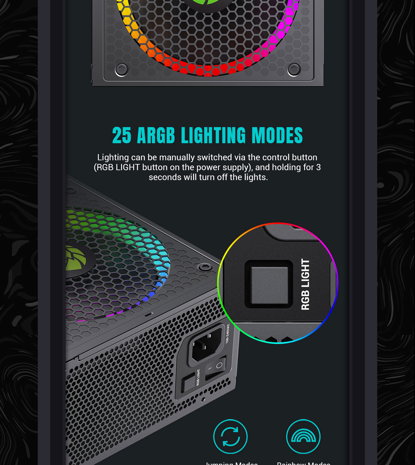 RGB Lighting: 140mm ARGB fan with 25 lighting modes, syncs with major motherboard brands.