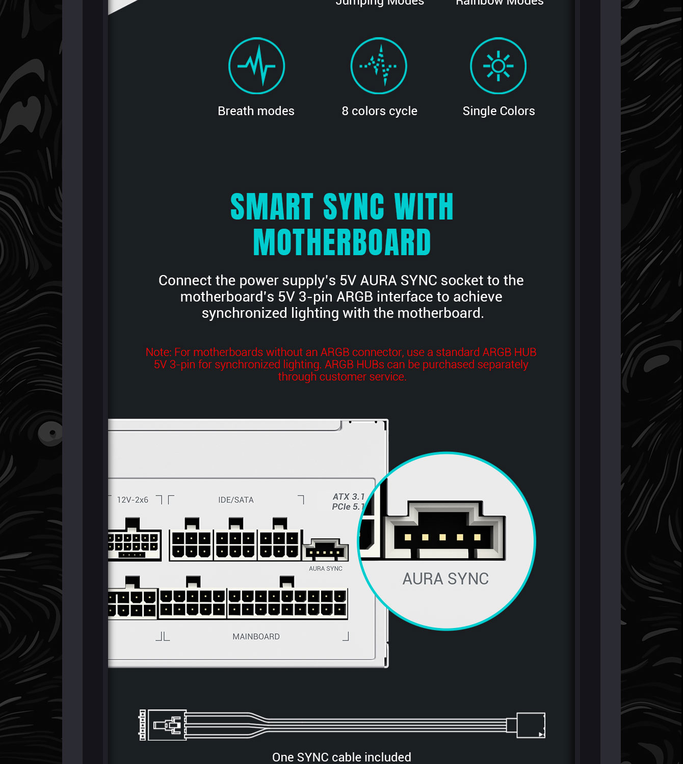 | ARGB SYNC | Access external ARGB HUB or 5V 3pin signal from motherboard |