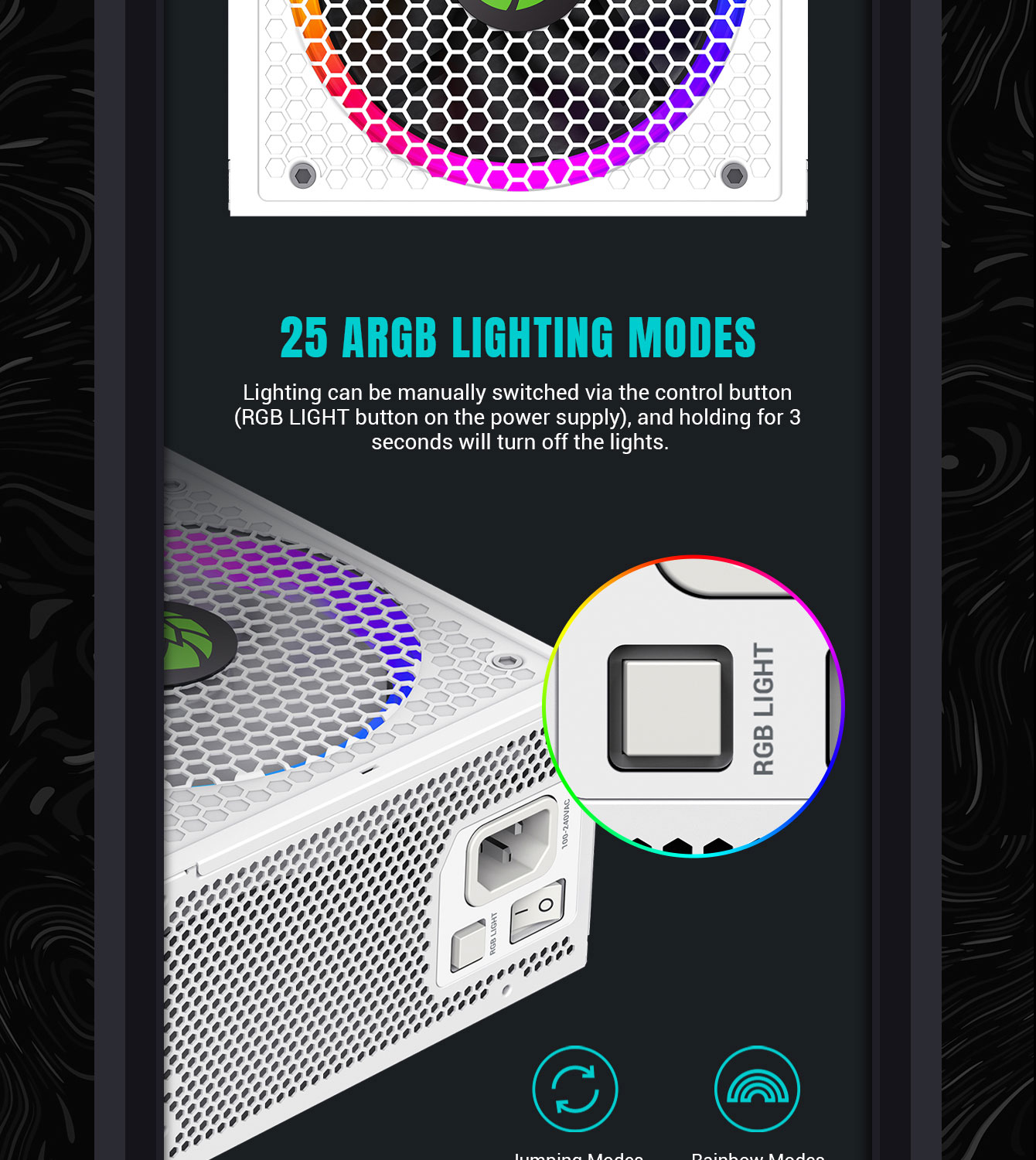 PC Power Supply 1050w white Fully Modular 80+ Gold Certified with RGB Light Mode ARGB SYNC PSU