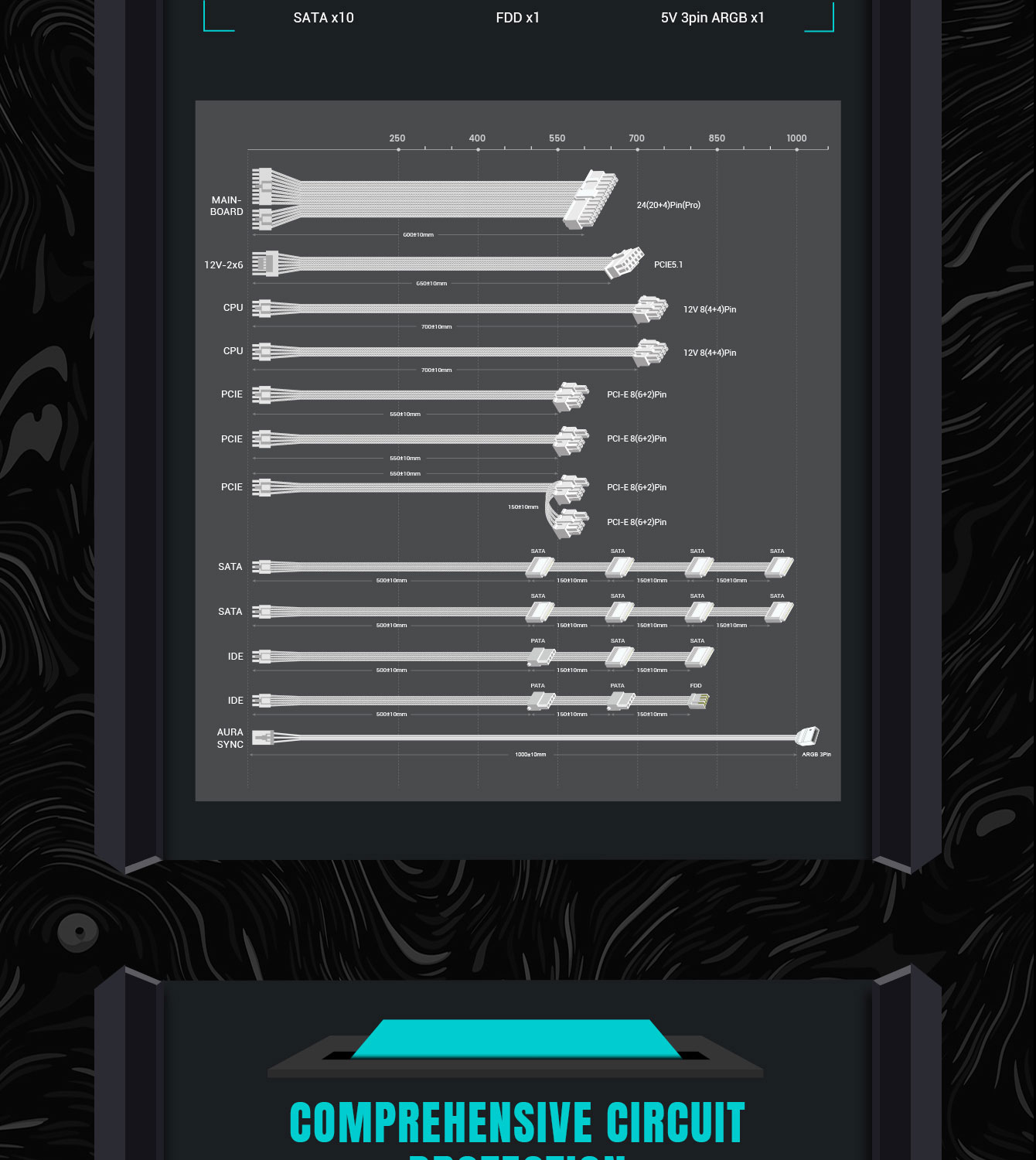 • Compatibility: Supports ATX 3.0/3.1, PCIe 5.0/5.1, 16-pin 12V-2*6 for latest GPUs.