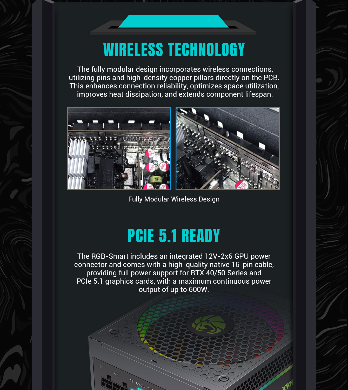 • Compatibility: Supports ATX 3.1, PCIe 5.1, 16-pin 12V-2*6 for latest GPUs.