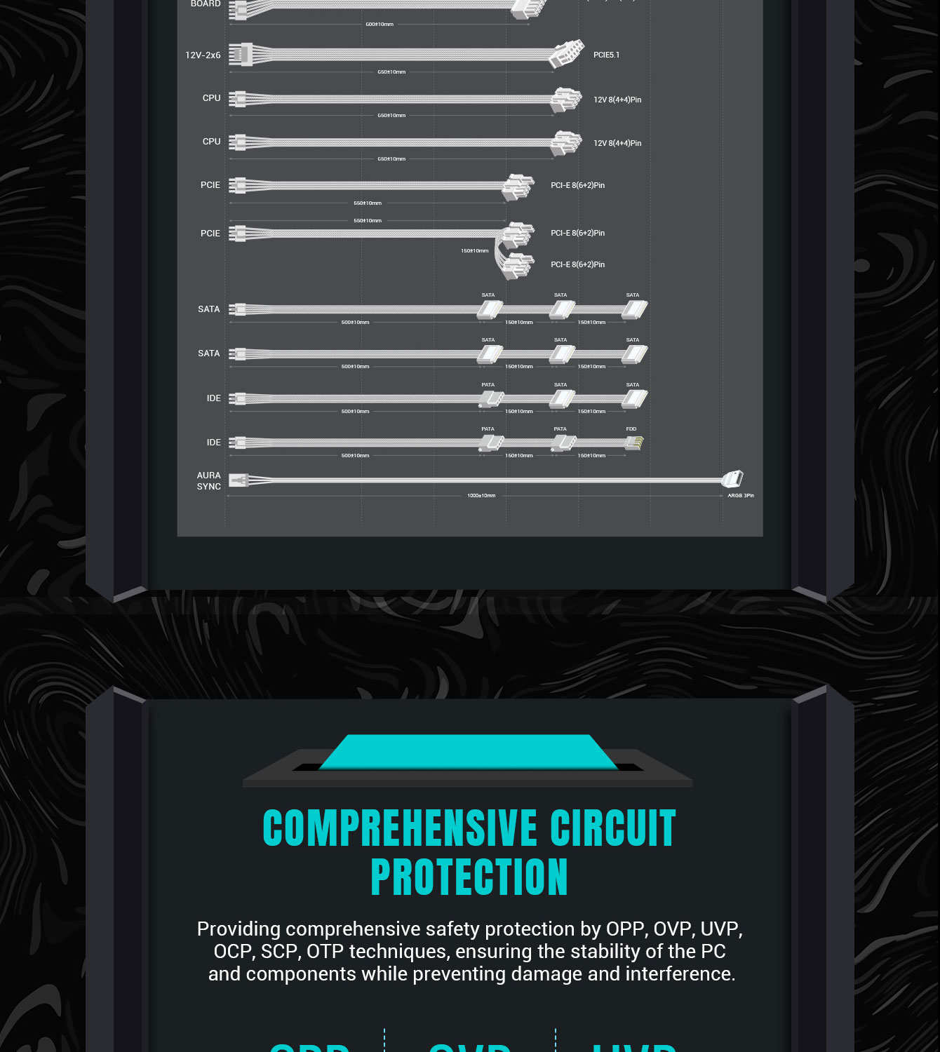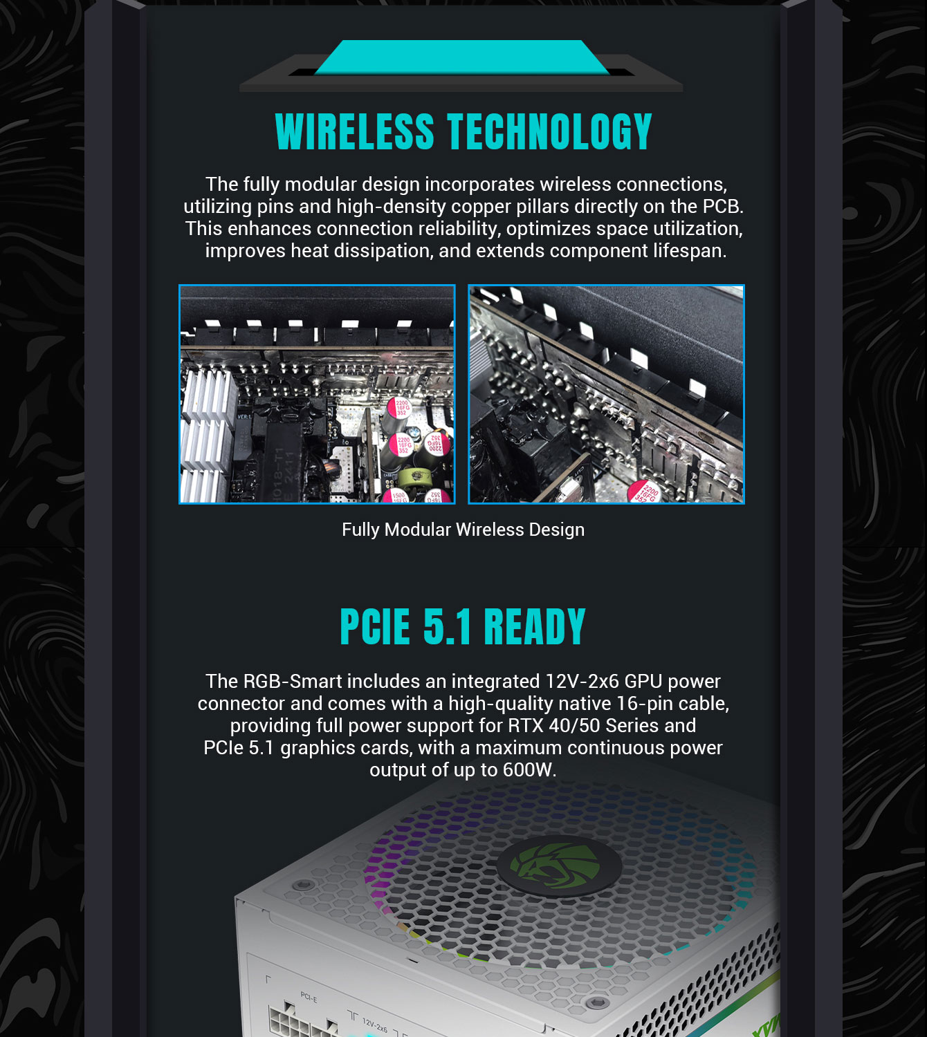 • Compatibility: Supports ATX 3.0/3.1, PCIe 5.0/5.1, 16-pin 12V-2*6 for latest GPUs.