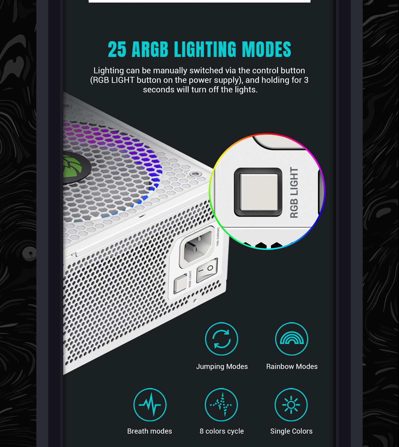 GameMax RGB 750w power supply,80 Plus Gold modular power supply