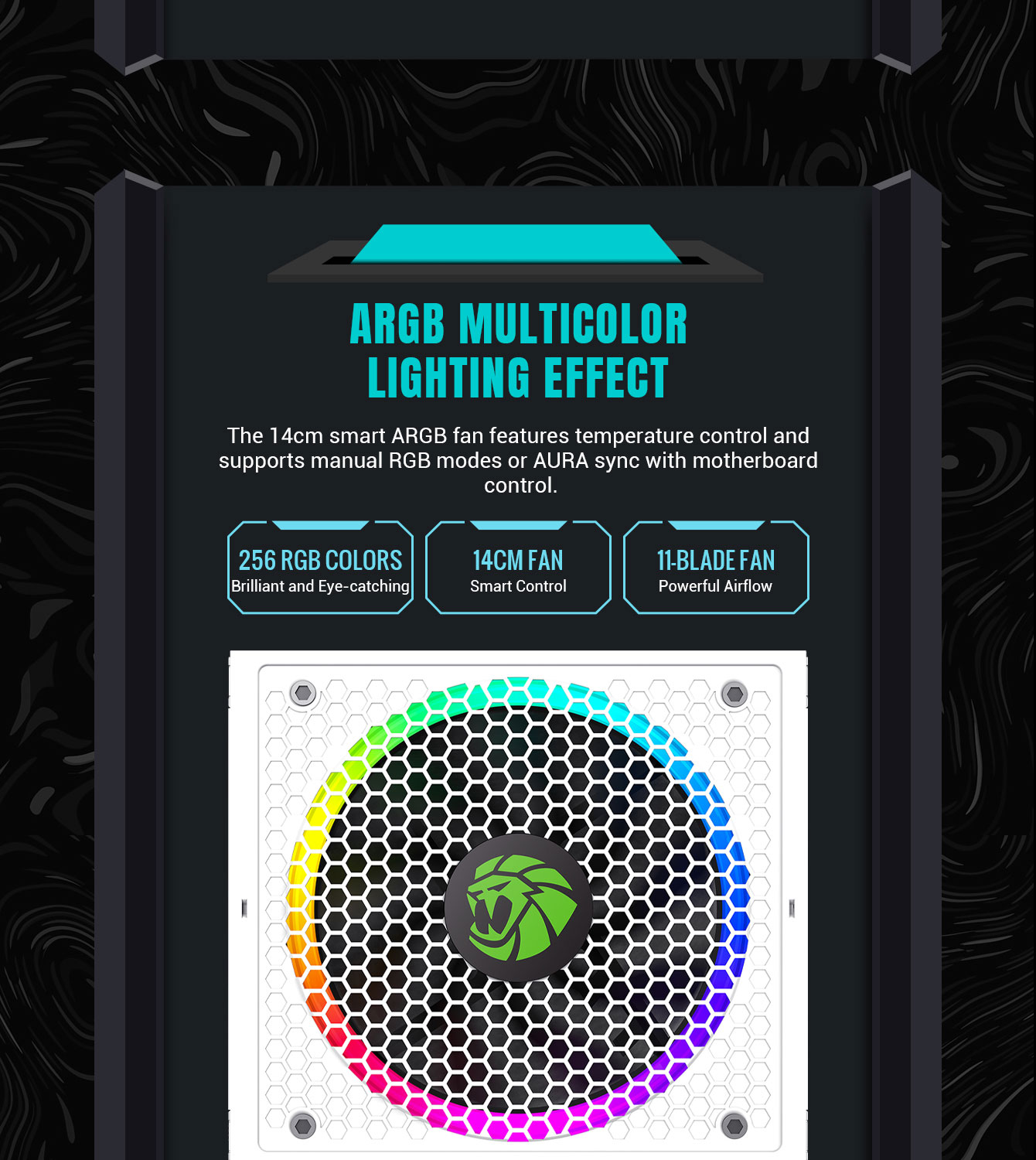 | Fan Information | Fan Size | 140mm with ARGB LEDs |