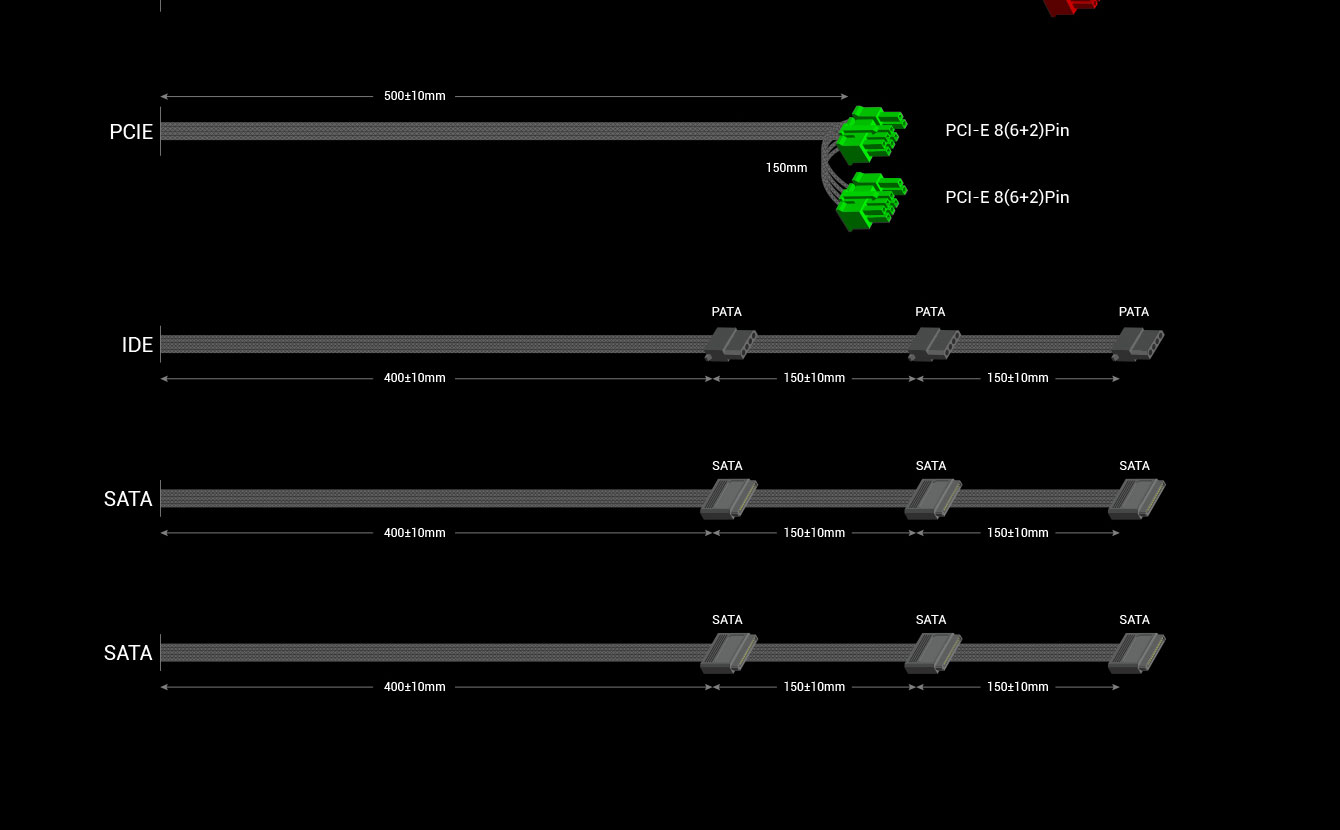 | Cable type | Black tube shield along with colors CPU and PCIe connecor | |