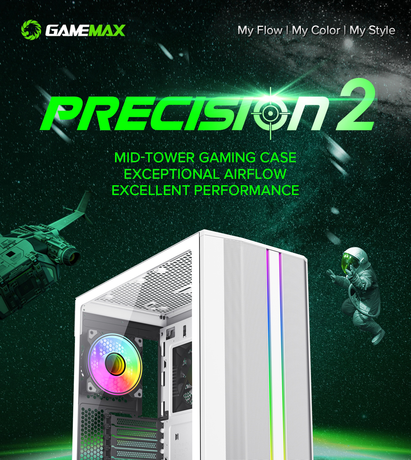 Precision 2 mid-tower gaming chassis, excellent performance, The upgraded detachable top plate solves the common problems of ordinary chassis on the market, satisfies the rapid installation and maintenance of your computer hardware, and improves the ease of installation of hardware accessories It is more convenient to install the radiator and fan
