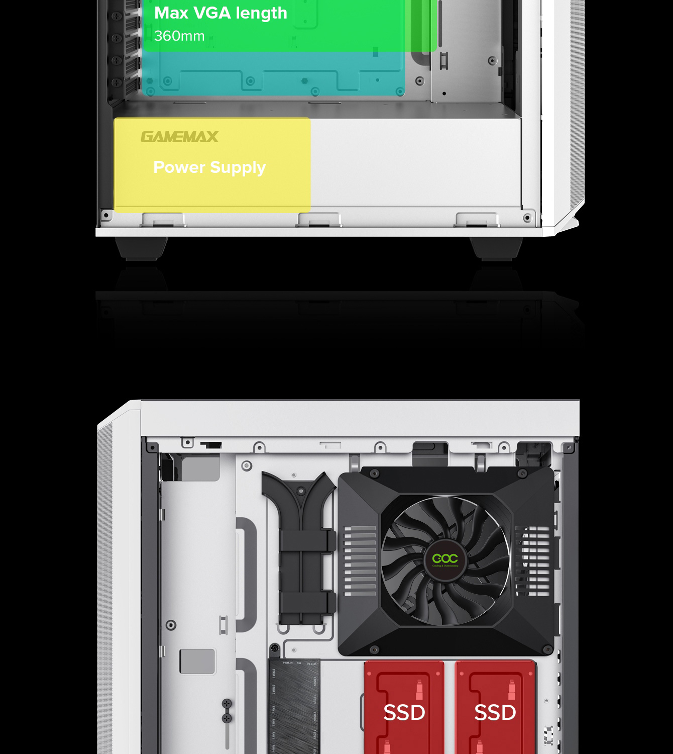 • Large space inside the chassis, supporting high-end graphics cards and large radiators