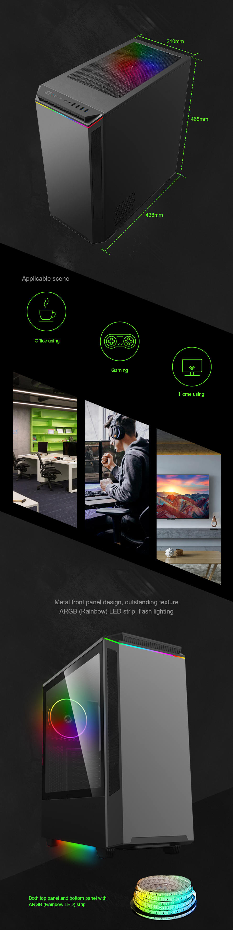 | Front Panel | Metal Panel Along with ARGB rainbow strip | |