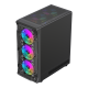 • Tempered Glass Side Panel: Showcases internal components and RGB lighting with a sleek glass design.
