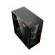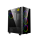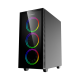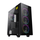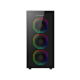 • The front panel is pre-installed 4x120mm Dual ring fan with ARGB light mode controlled via build-in HUB, It gives big air flow and excellent effect and the spectrum LED strip inlayed to give this case the perfect balance between style and RGB