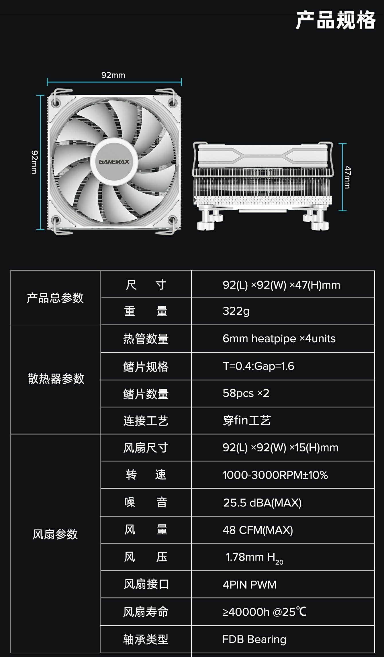 | 风扇尺寸 | 92×92×15mm |