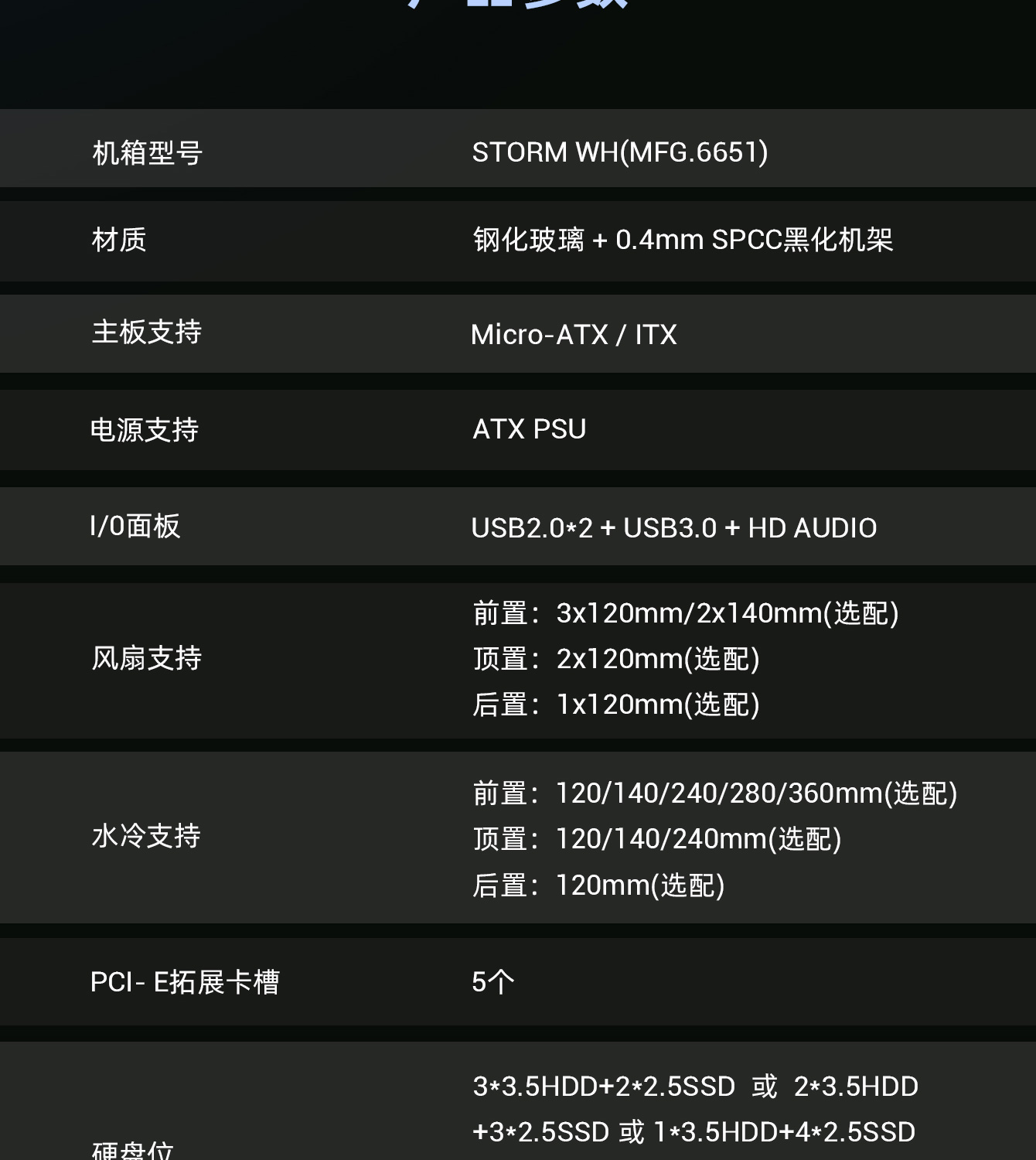 | 机箱型号 | STORM BK |