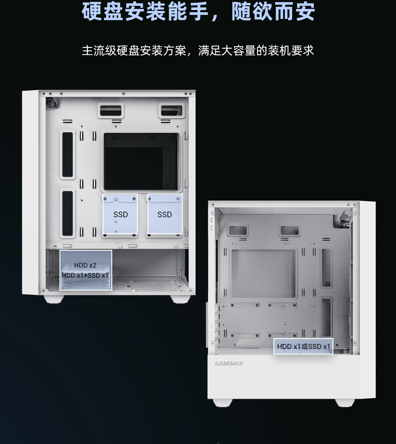 | 硬盘位 | 33.5HDD+22.5SSD 或 23.5HDD+32.5SSD 或 13.5HDD+42.5SSD 或 03.5HDD+52.5SSD(可另选配 2 个 SSD 位,需要加 SSD 组件) |