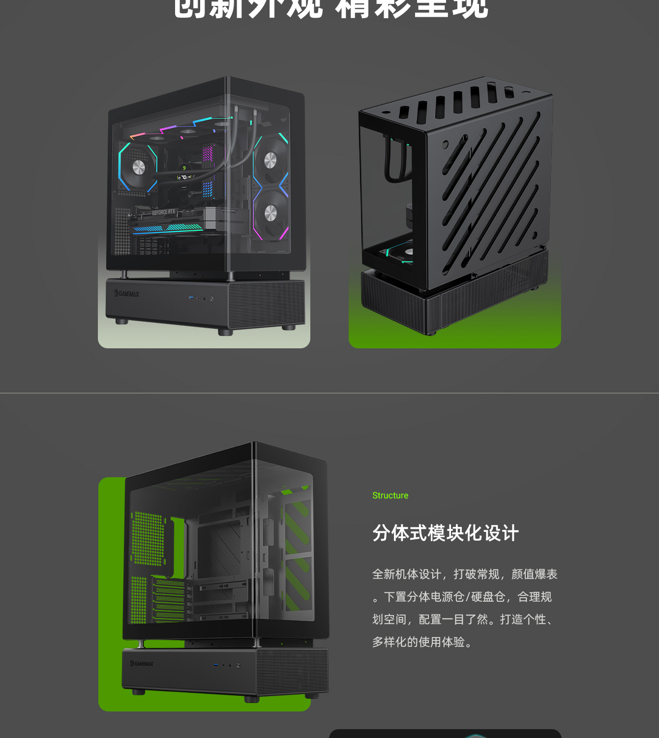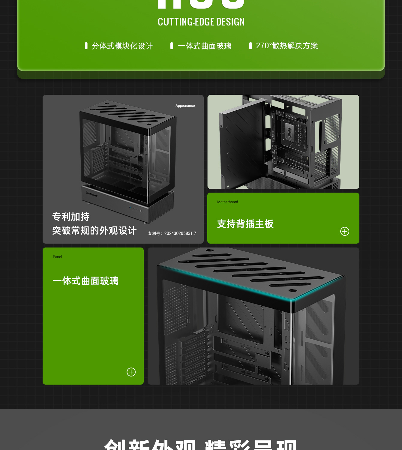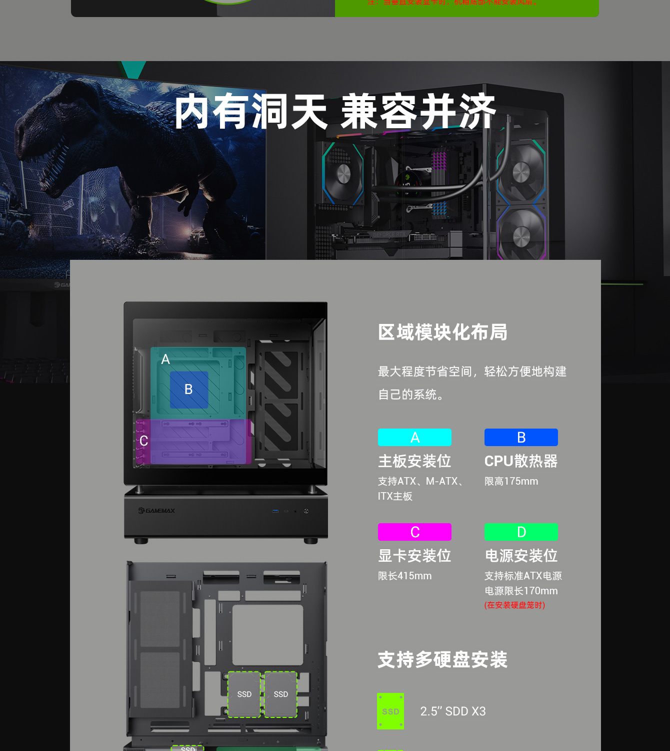 | 水冷散热系统 | 顶板: 120/140/240/280/360mm (选配)侧板: 120/240mm (选配)后板: 120mm (选配) |