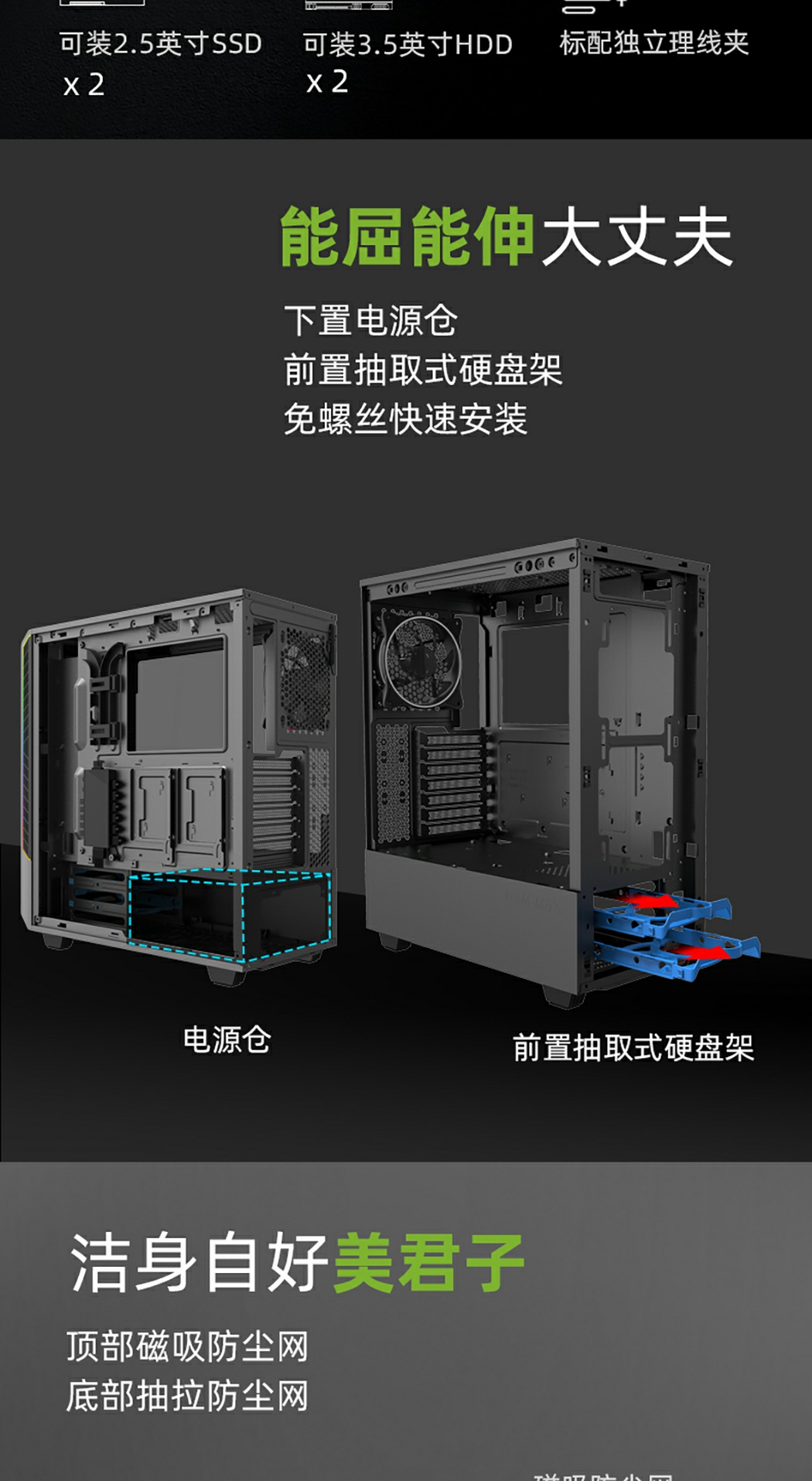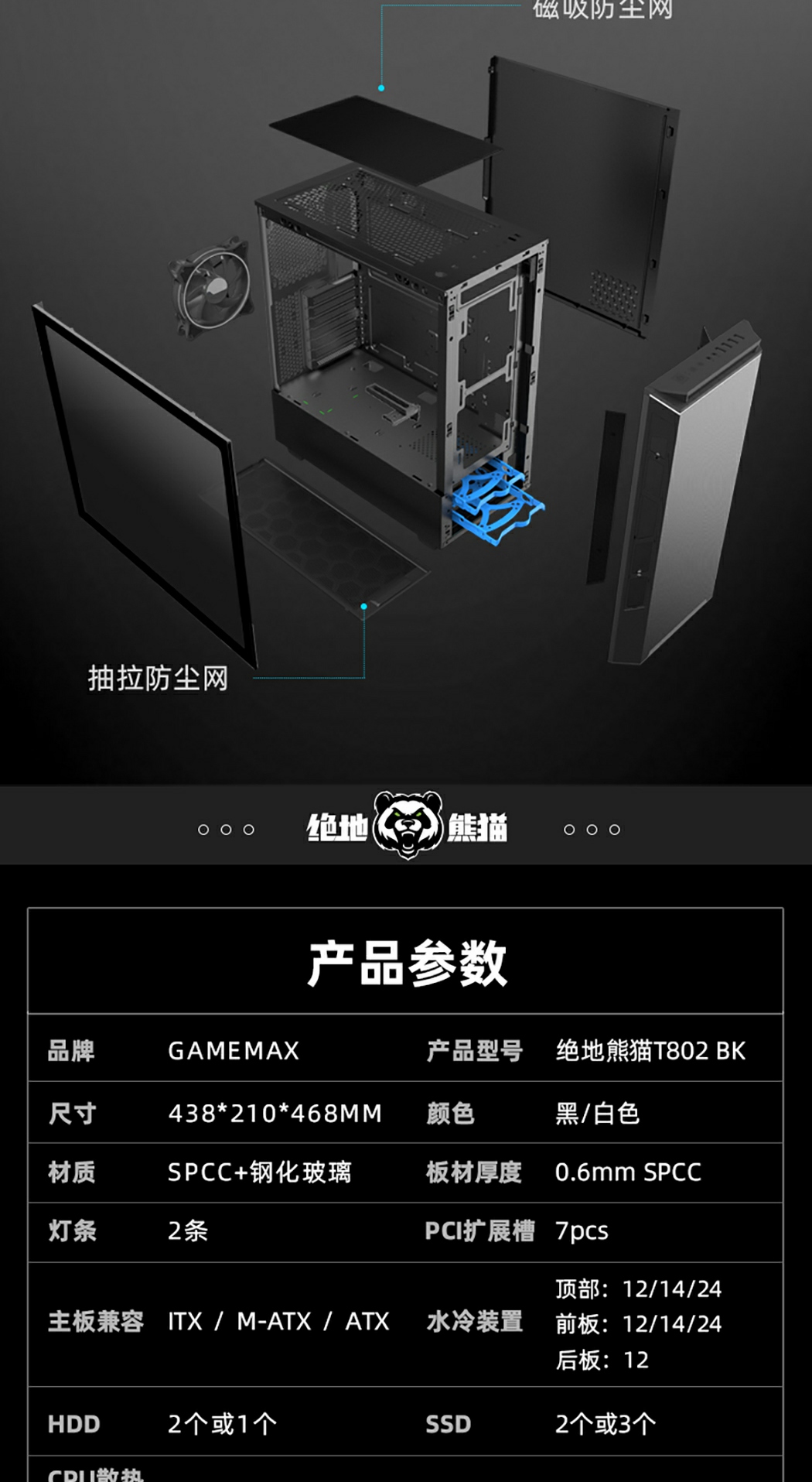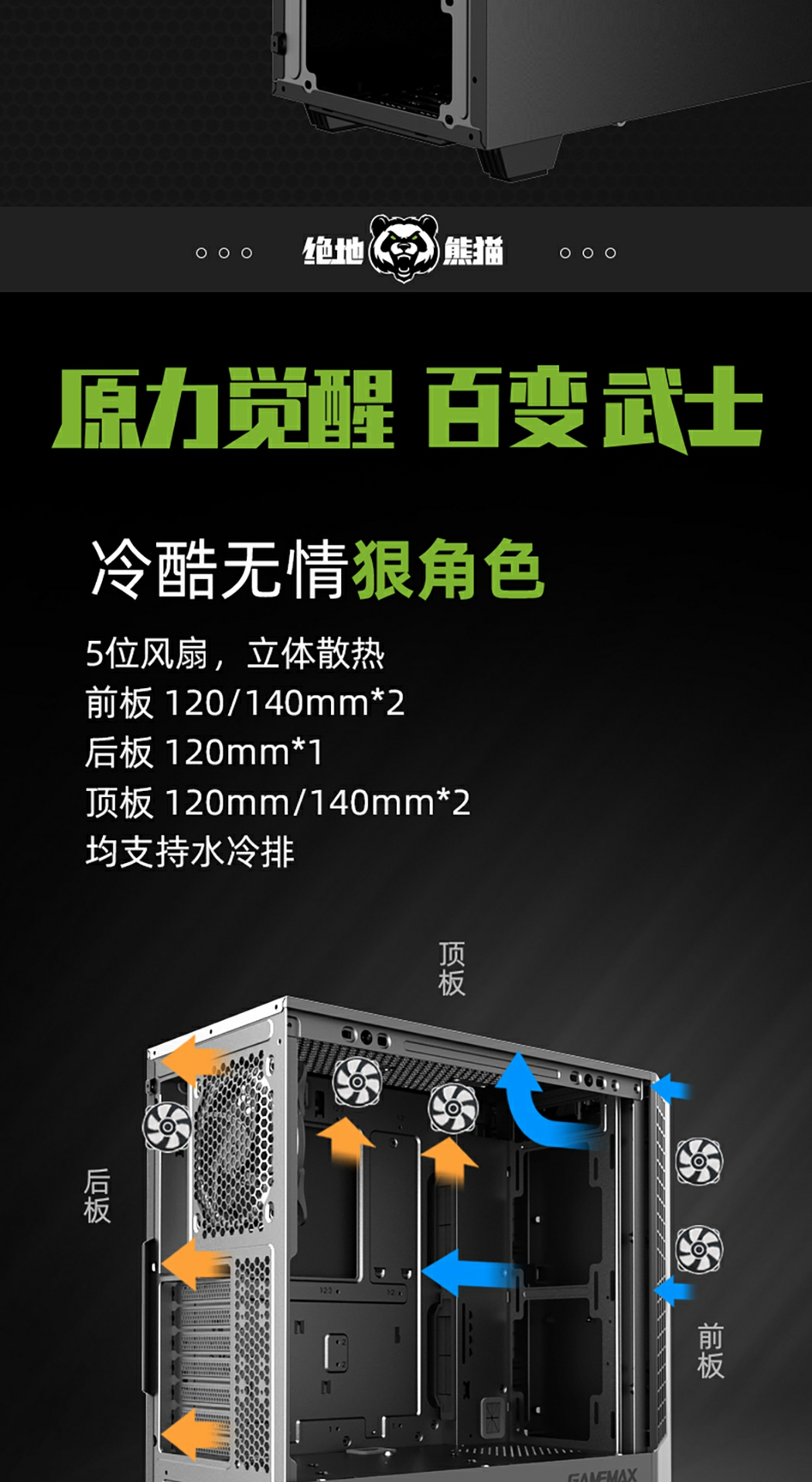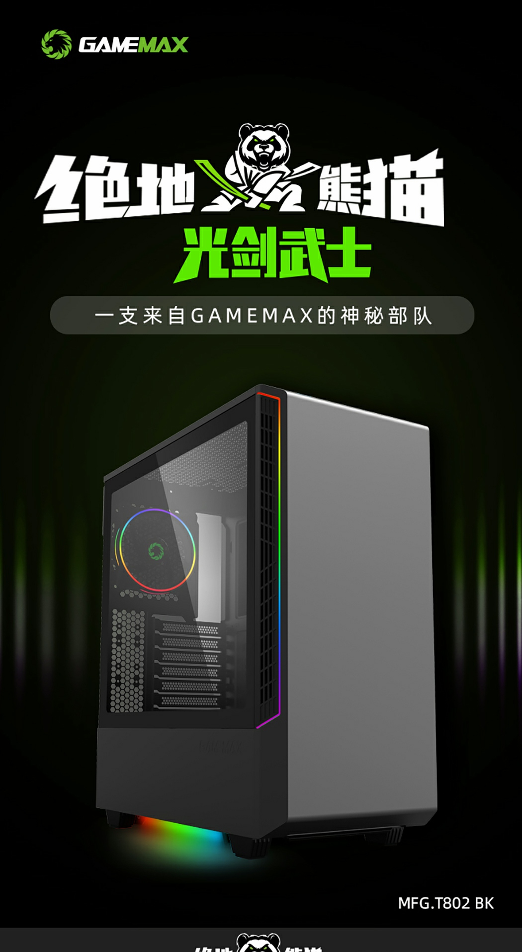 GameMax绝地熊猫Panda游戏中塔游戏机箱,它引入了一个全新的机箱内部空间,通过直观和方便的安装进一步增强了干净的内部和外部设计。