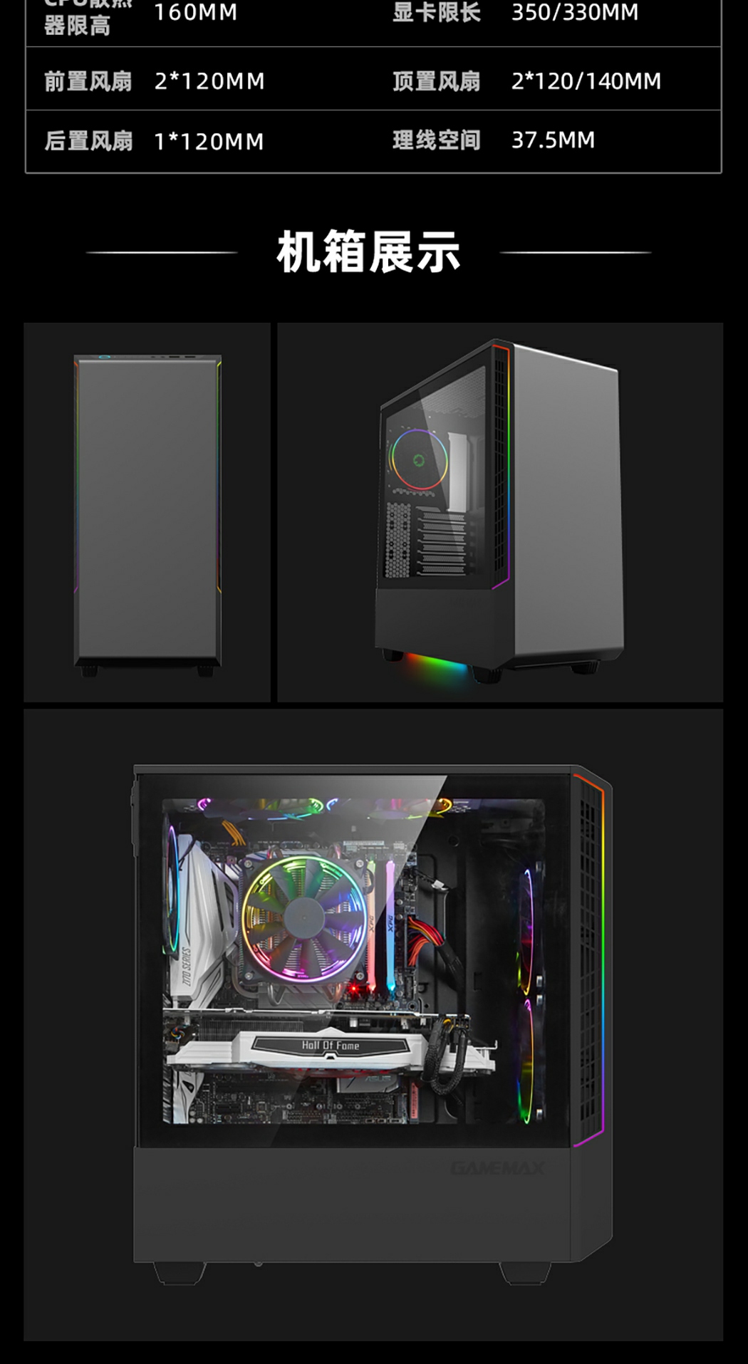 • GameMax绝地熊猫型号还具有可选的垂直显卡支架,以提供灵活的安装位置。并支持神光同步(需要选配同步线), Aura SYNC Reader!