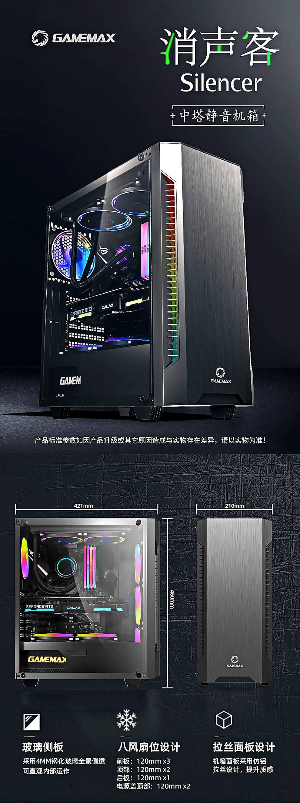 X8系列游戏机箱,为中塔电竞游戏机箱,双 ARGB 灯条外观, 配合ARGB HUB 或主板ARUA同步接口控制,提供多种颜色和模式以个性化外观。GAMEMAX提供电脑主机机箱、电脑机箱、游戏机箱、pc电源、适配器、一体机、键盘、鼠标、服务器机箱等一站式电脑整机及电脑配件配套方案。
