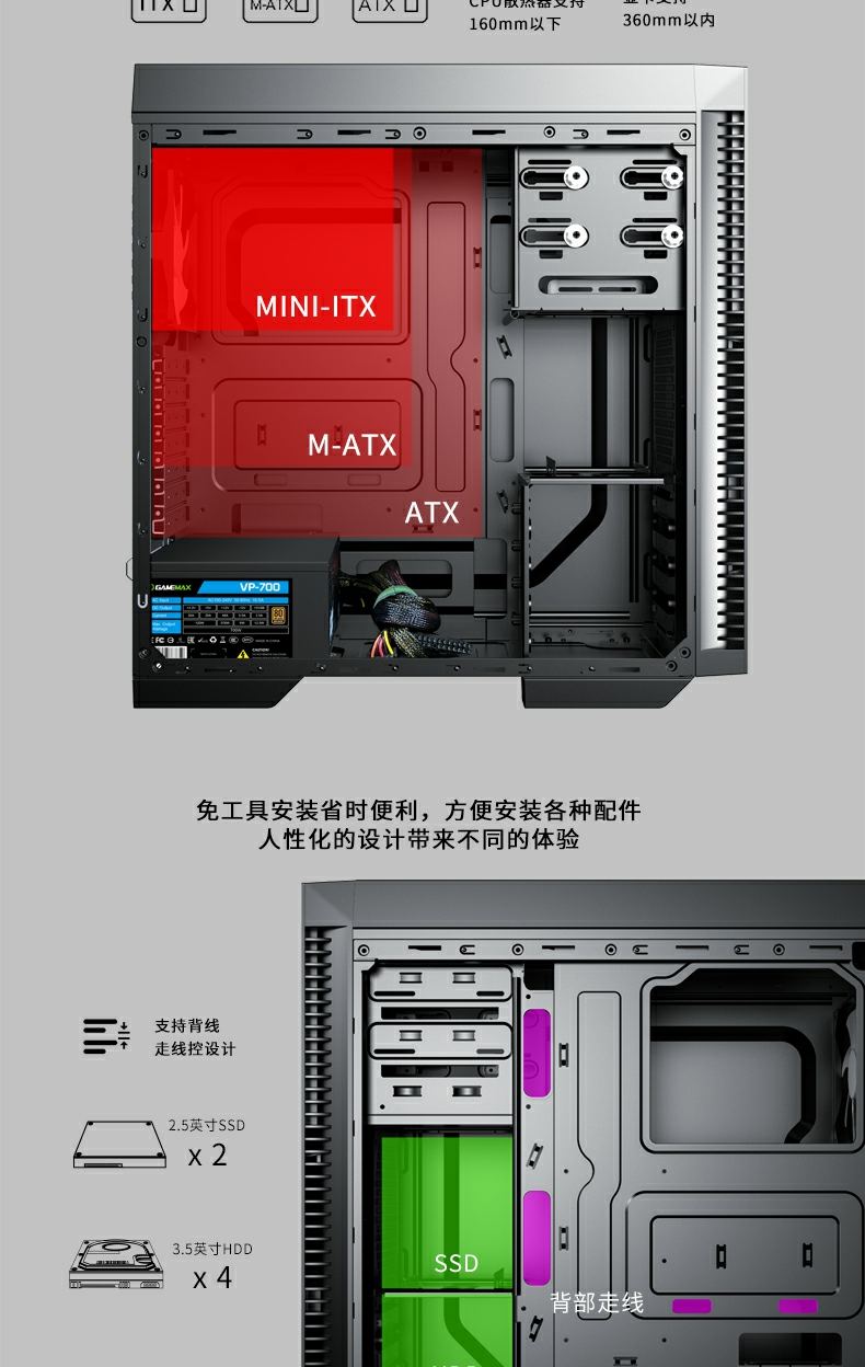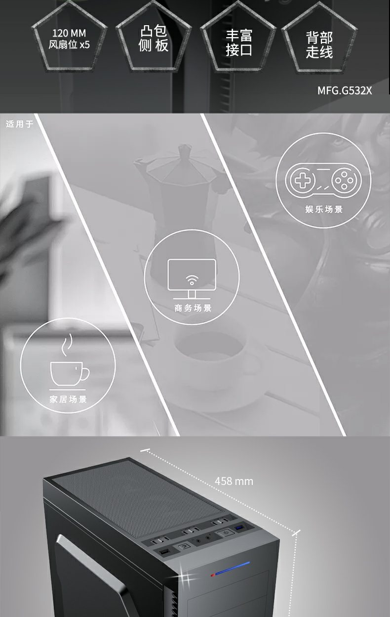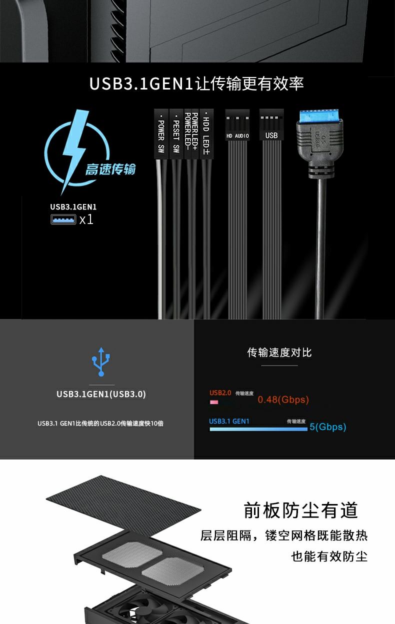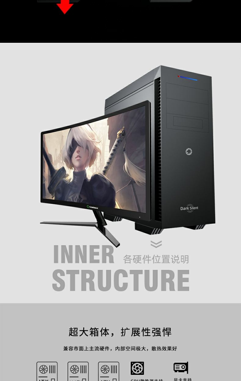 GameMax小轻风Dark Silent 静音设计和防尘,两侧面板内有左右静音棉),顶部带有防尘罩的隔音罩。 专为高密度降噪的静音计算而设计。