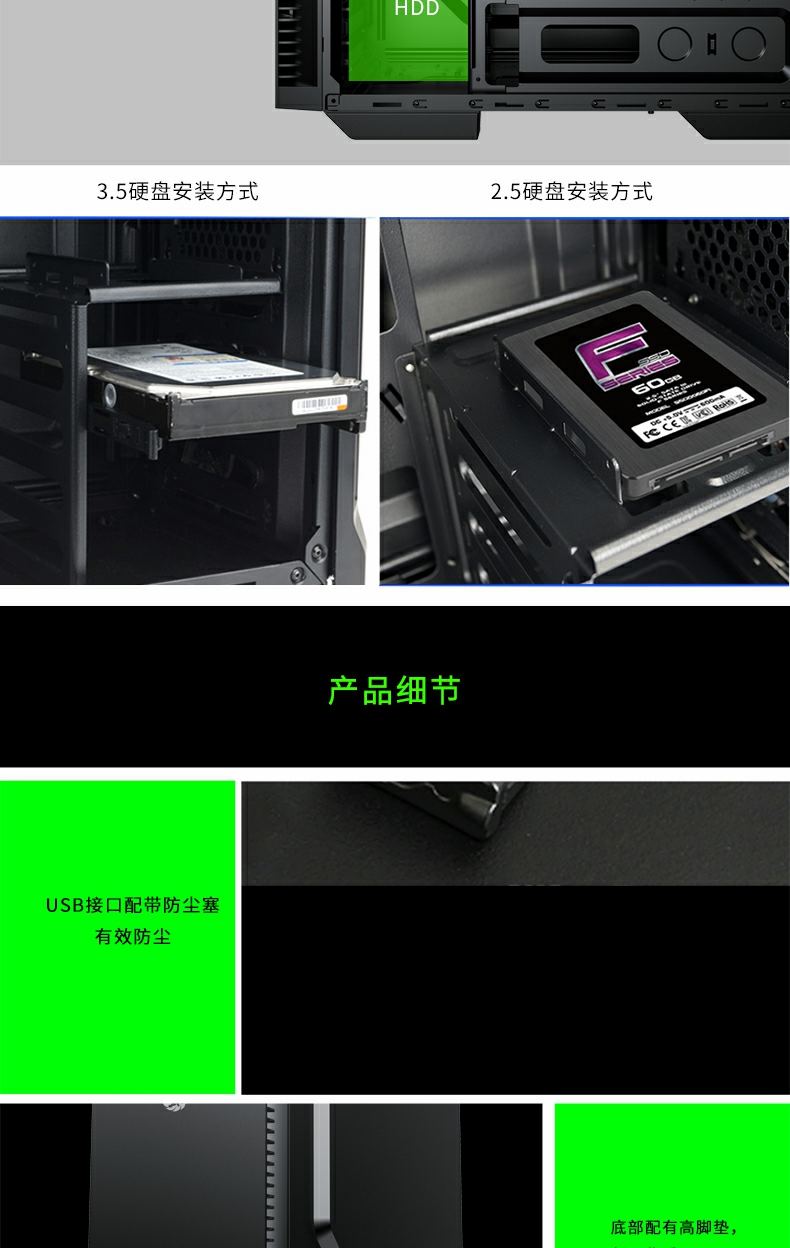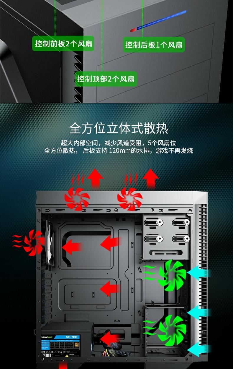 小轻风Dark Silent 前置 5x Black 静音风扇,搭配 3xChannel 风扇速度控制器,也可控制强大的散热和噪音水平,最终满足任何游戏玩家的审美需求。