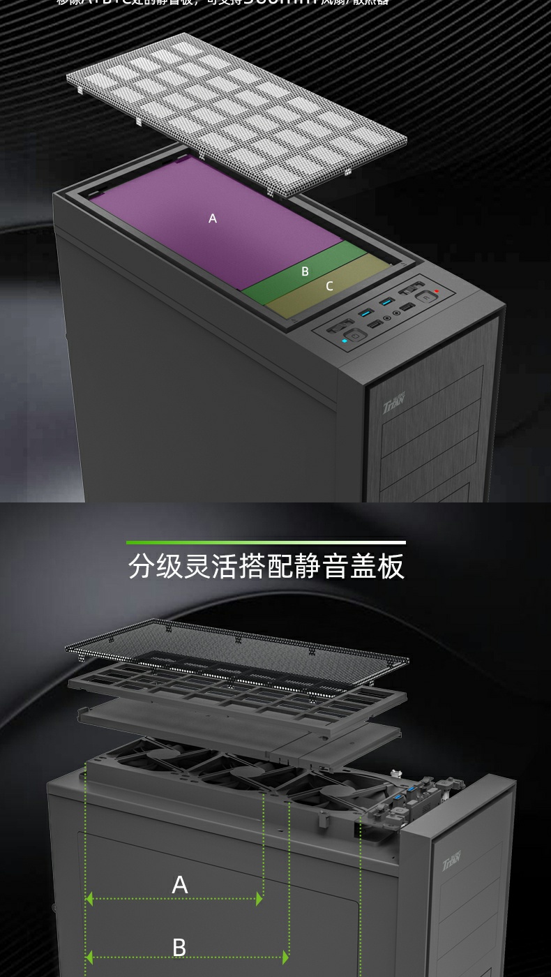 • 巨人静音机箱Titan Silent 还支持 E-ATX 大尺寸主板作为 PC 服务器主机的选项机箱,因为重要的是,全高机箱可以安装总共 10 个 HDD 以使您的 PC 进入 Raid 3 或 Raid 5(冗余阵列 独立驱动器)