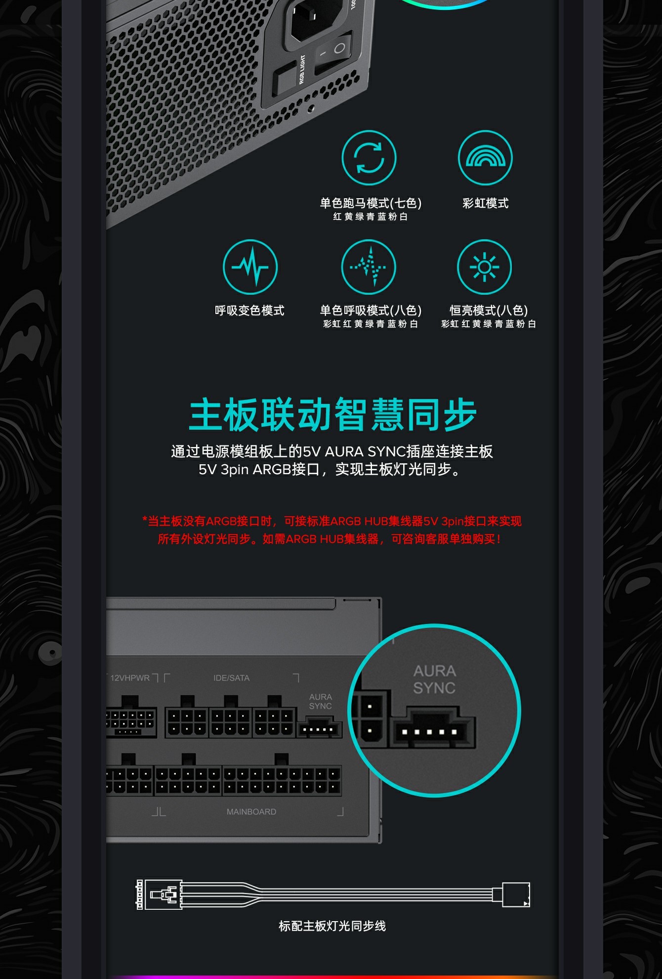 | Aura SYNC Mode: | Access external ARGB HUB or 5V 3pin signal from motherboard |