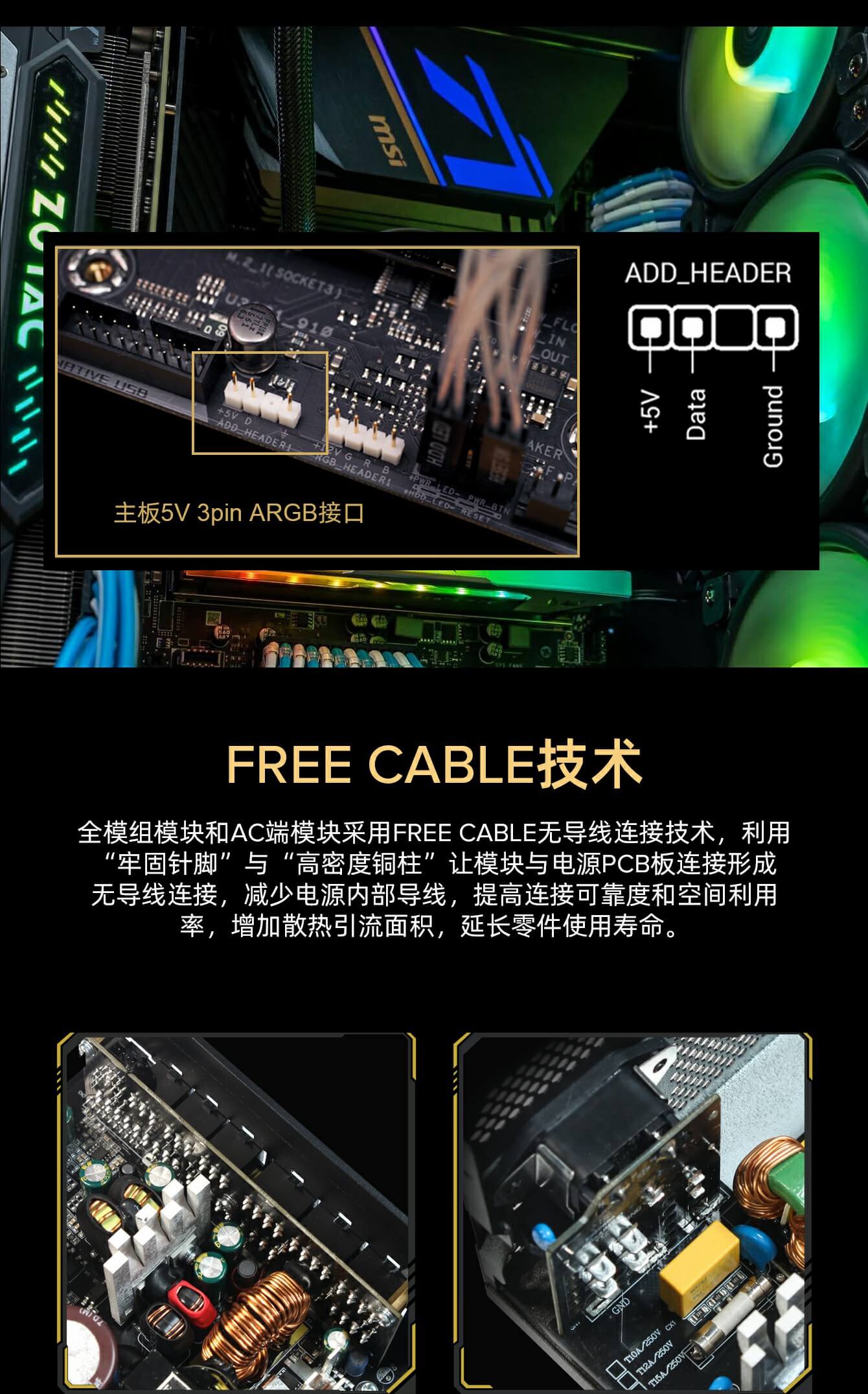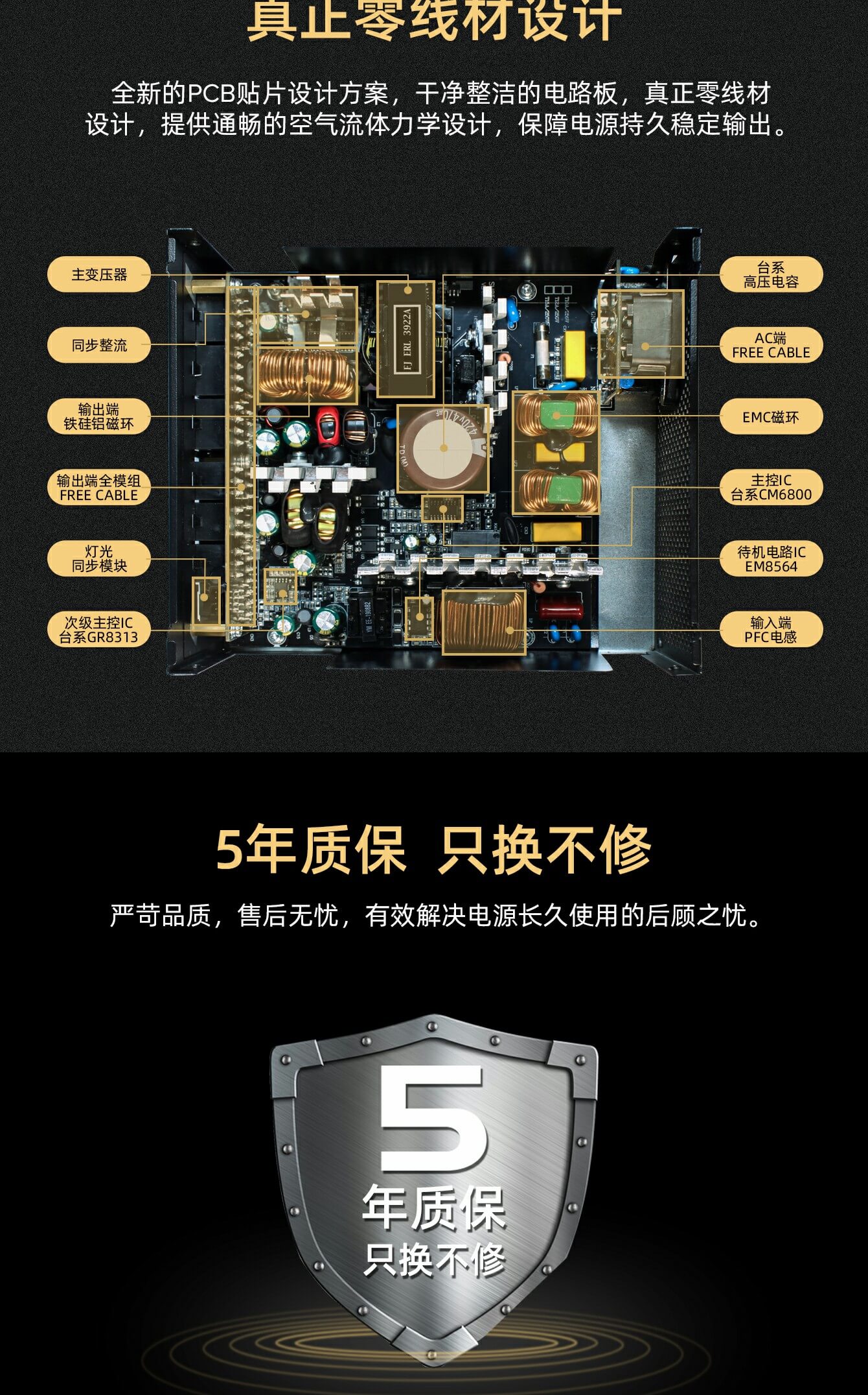 全模块化:免费线缆设计,告别凌乱的线缆!子板直接焊接到主板上,散热更好,输出功率质量令人印象深刻。