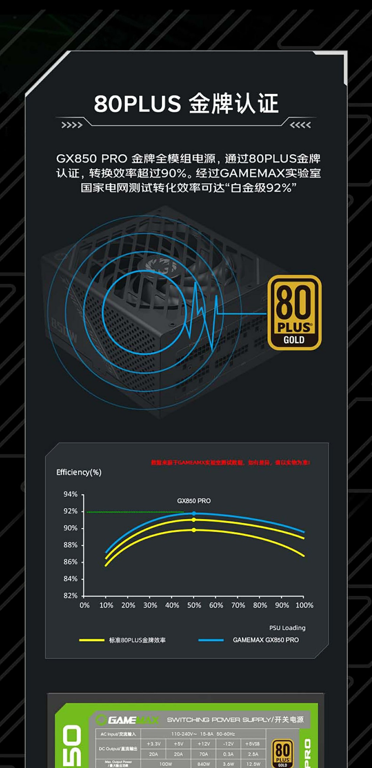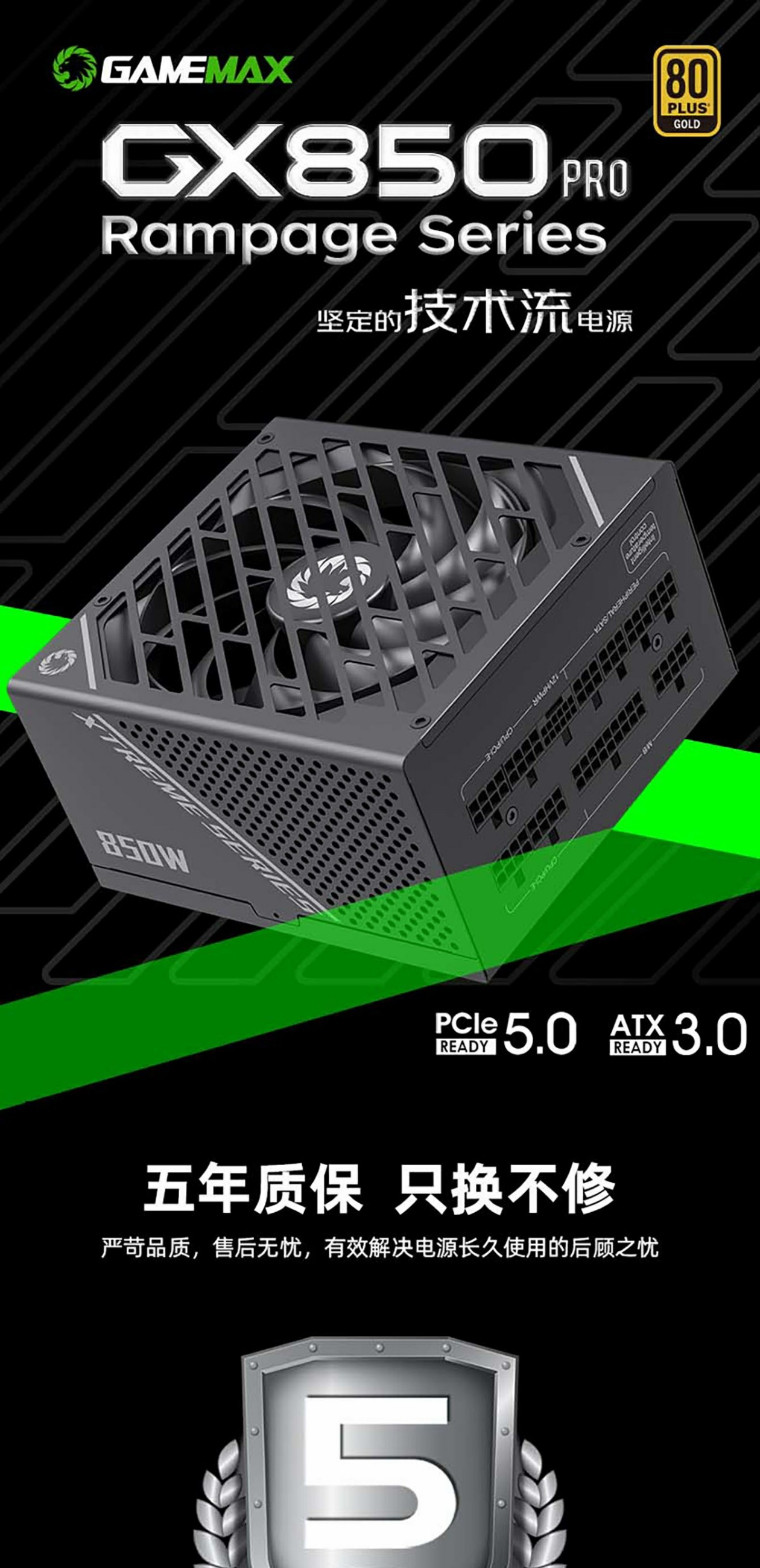 GAMEMAX凌雲GX-850W专业版技术流日系电容ATX3.0电源(可编程LLC/双联DC-DC/数控APFC/13.5涡轮轴流扇PCIe5.0)