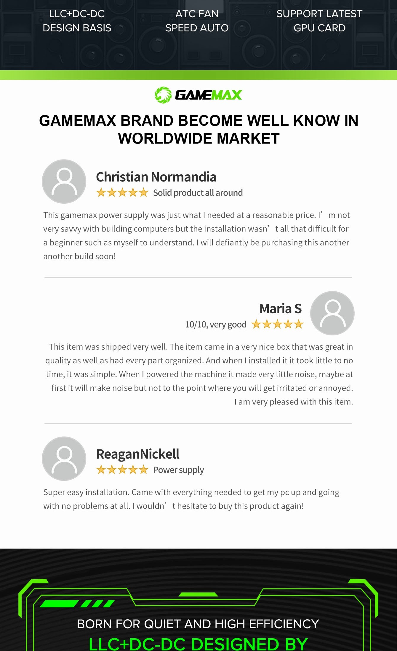 GameMax GX 系列电源获得 80+ 金牌认证,为游戏玩家和系统制造商提供了巨大的价值,FDB 风扇在重负载期间减少热量,同时降低噪音水平,设计具有稳定性和耐用性,GX 系列是为您的系统供电的完美选择!