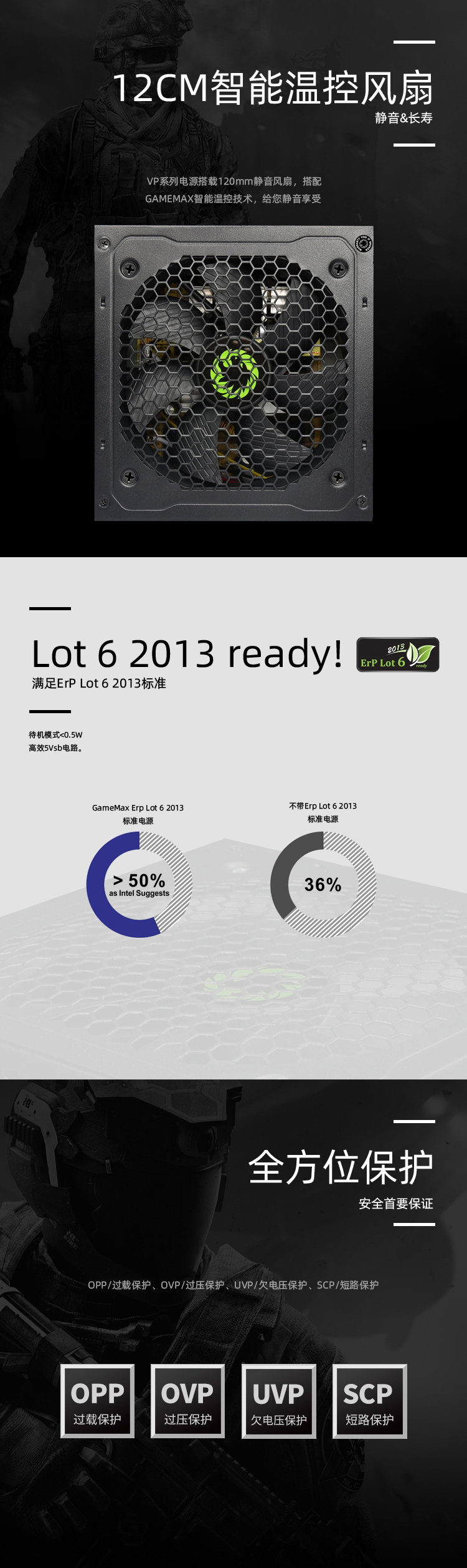 VP系列电源使用80+ APFC电路,内部包含多种保护电路,并获得TUV最严格的安全认证,符合最新环保电源标准,待机功耗低于0.25W! Ready for you!